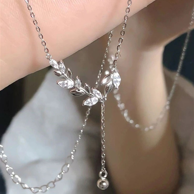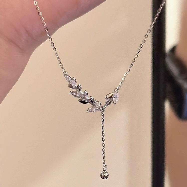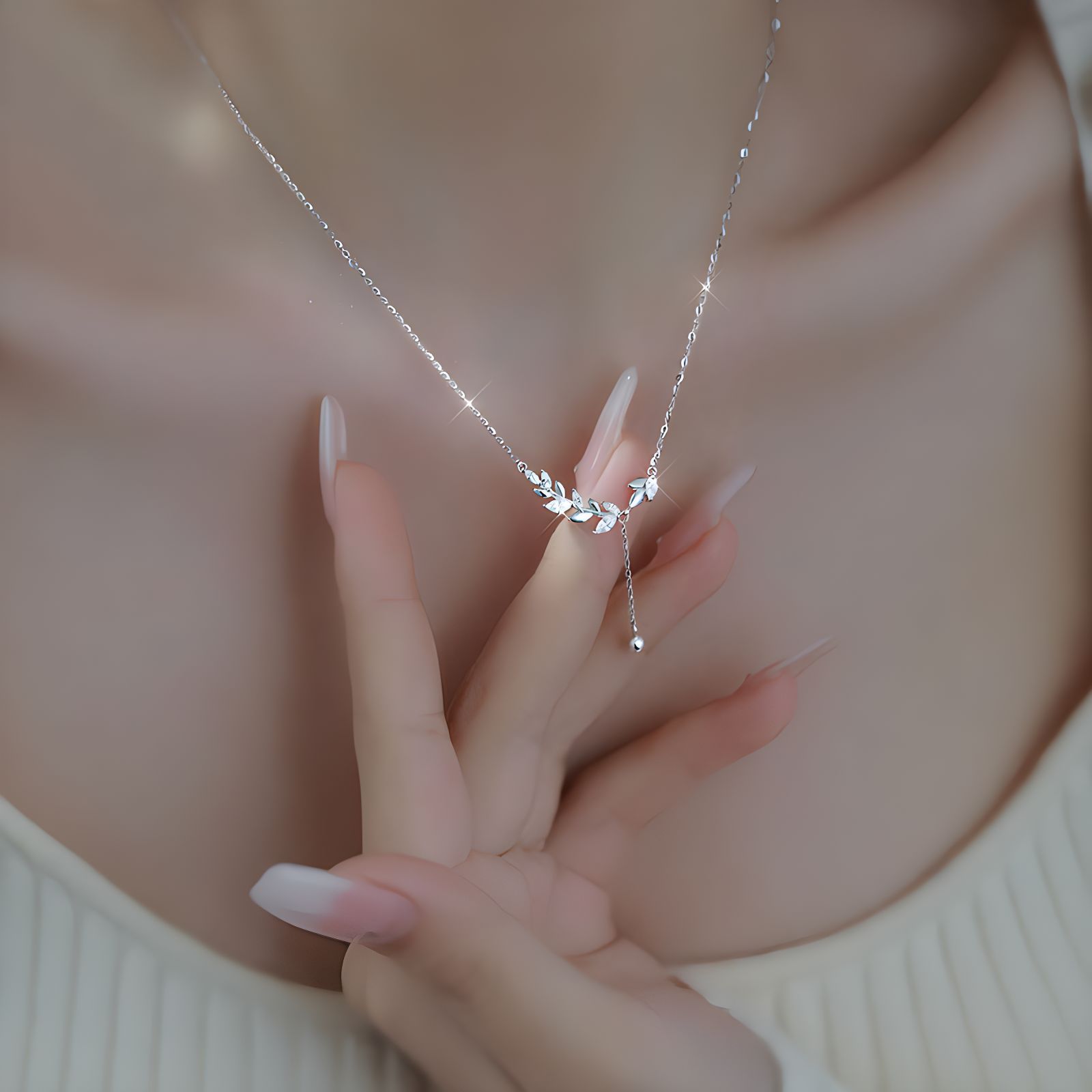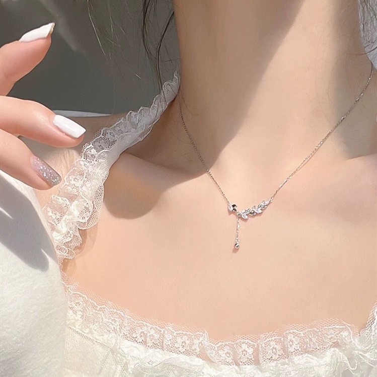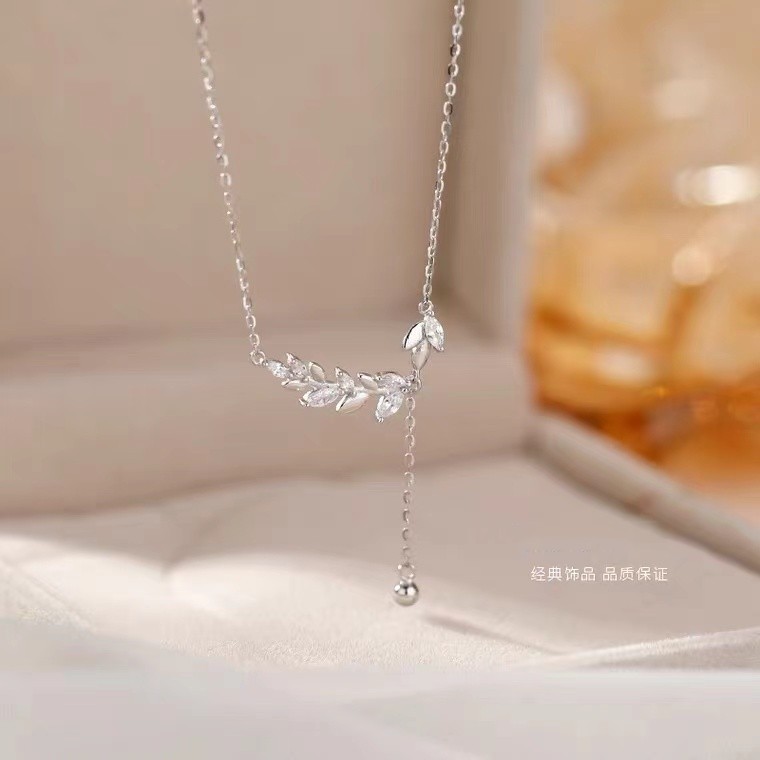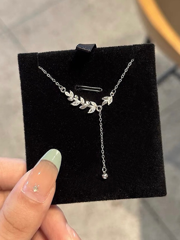 S999純銀小清新木の葉麦穂流蘇ネックレス気質軽豪華感ブレスレットネット赤銀飾り鎖骨鎖潮