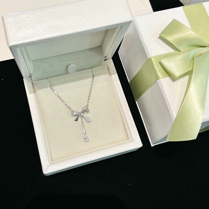 S999足银流苏蝴蝶结项链女甜美仙女风温柔气质锁骨链百搭锆石项饰