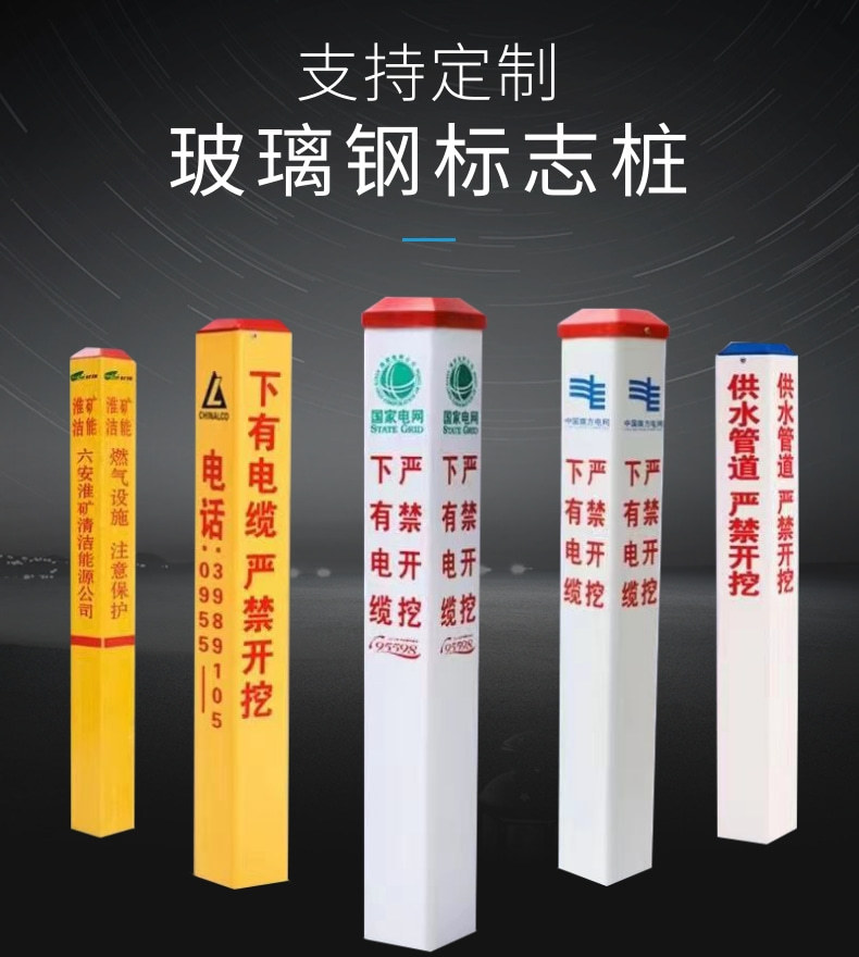 玻璃钢燃气标志桩电力电缆警示桩供水供电警示地埋标识桩界桩
