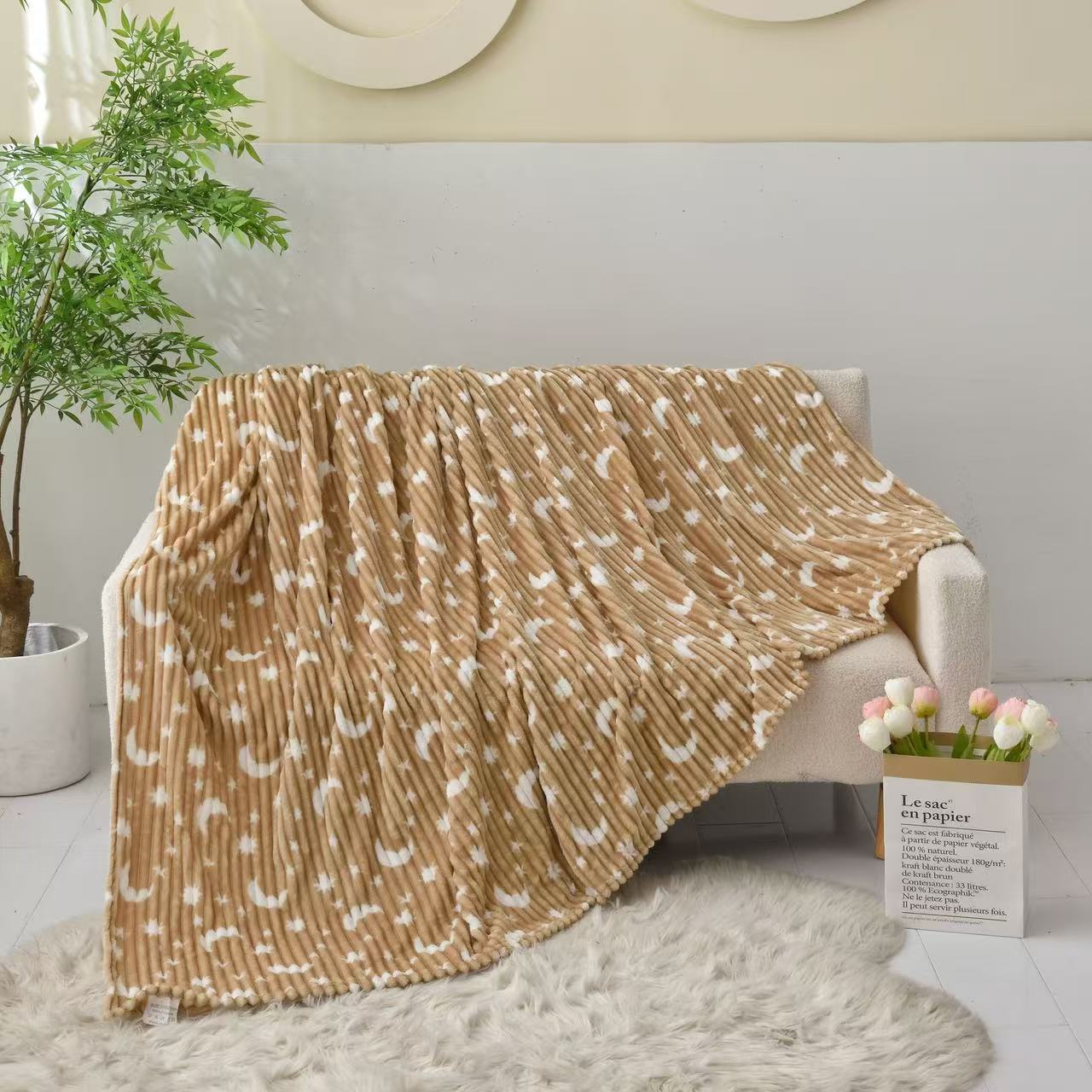 クロスボーダー Amazon カールスタームーンストライプブランケット昼寝ブランケットフランネルブランケットオールシーズンフリースブランケットエアコンブランケット