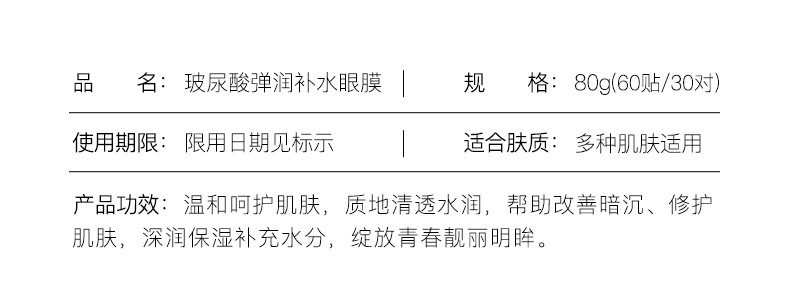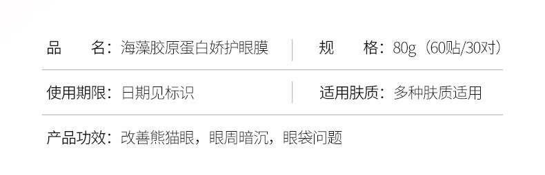 製品仕様 アミノ酸鎮静保湿アイマスク 80g,キャビア弾力保湿アイマスク 80g,海藻コラーゲンアイマスク 80g,Xinya メイクアップ ヒアルロン酸 保湿アイマスク (新品) 80g (60 パッチ/30 組)