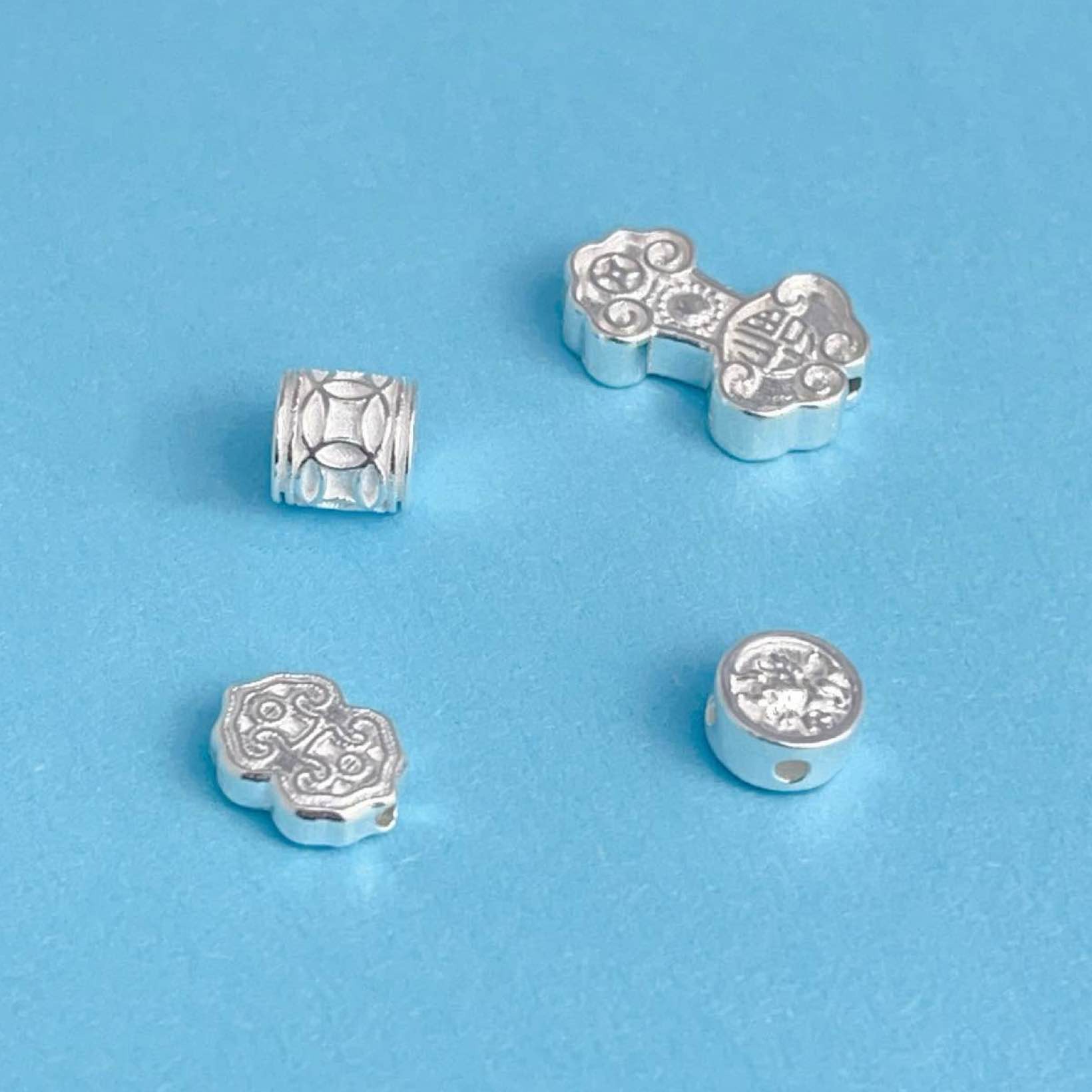 S999足银盘缠隔珠隔片DIY银饰配件手串项链隔片盘缠多圈配件批发