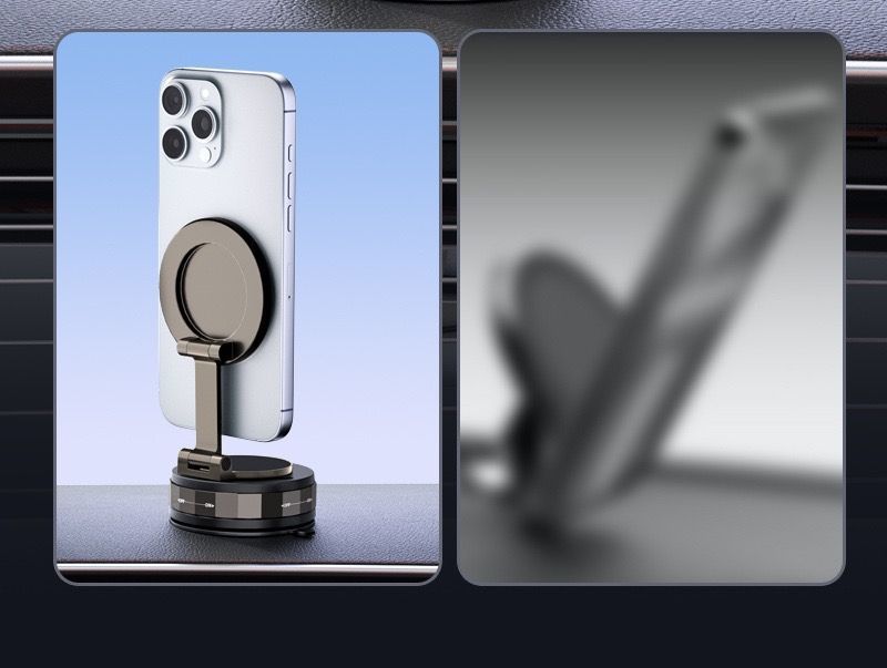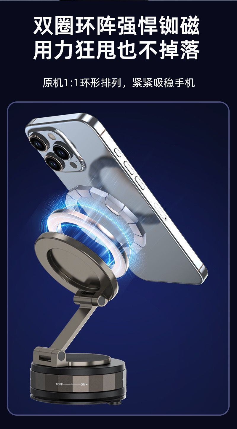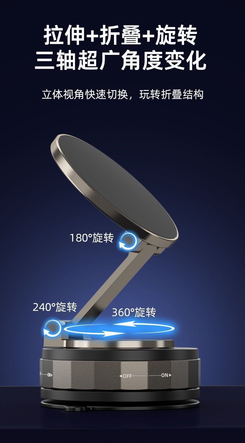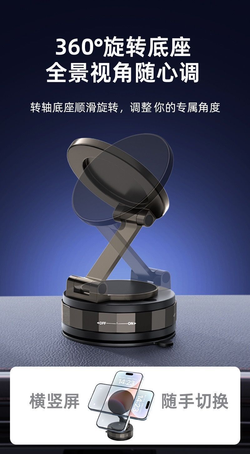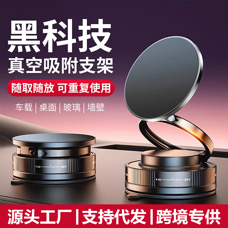 跨境车载手机支架磁吸360度旋转真空吸附便捷折叠支架家车两用款