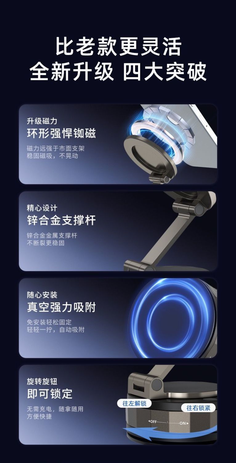 新款真空吸盘多手机支架可折叠伸缩车载桌面磁吸(价格全网优势)
