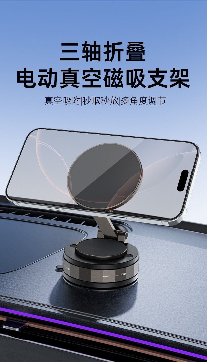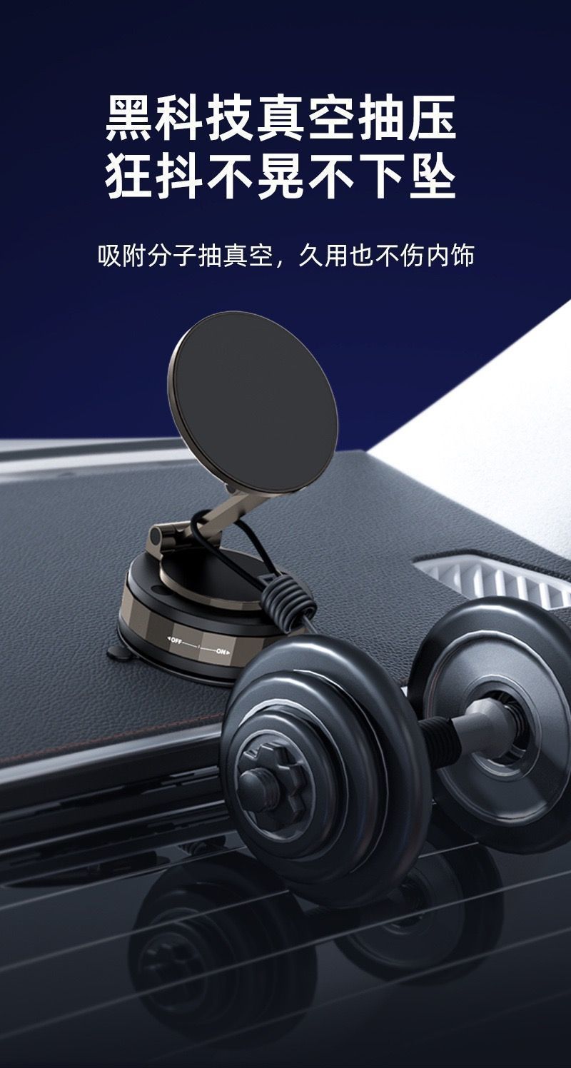跨境新款磁吸真空吸附车载手机支架可折叠多功能车载导航吸盘支撑