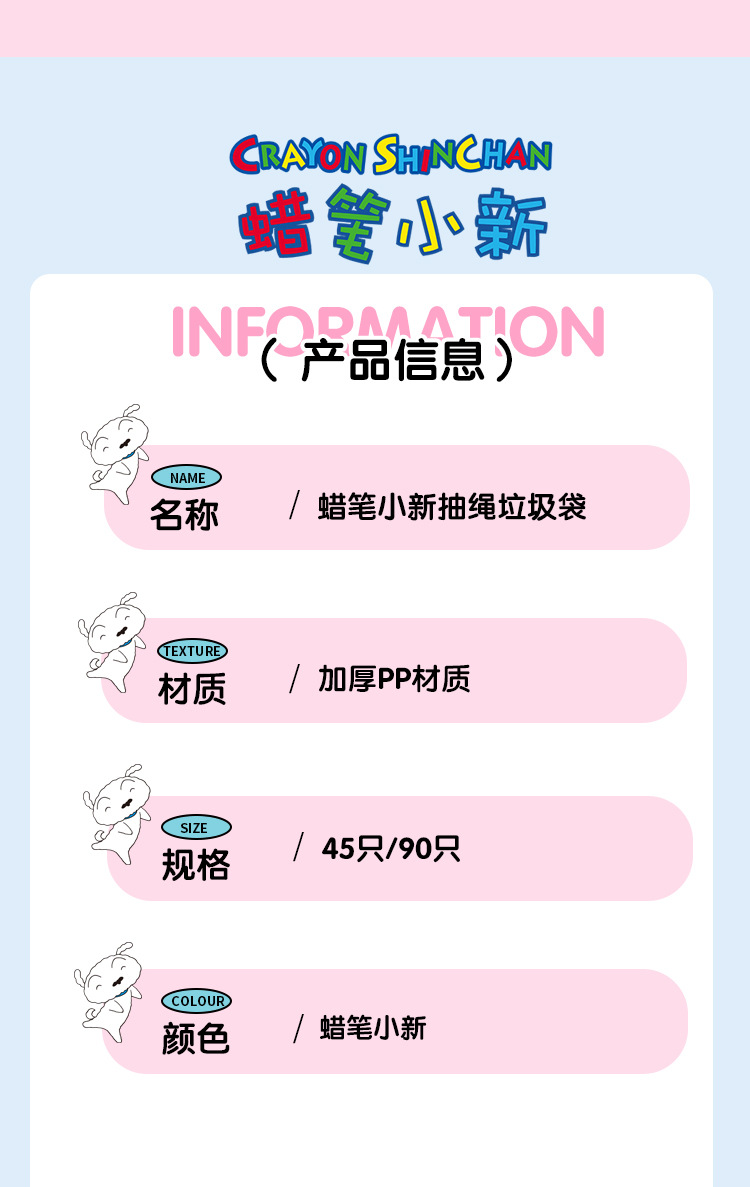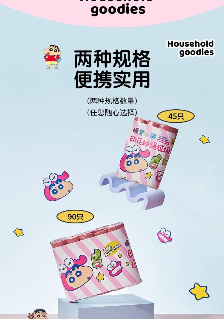 厂家批发蜡笔小新家用办公一次性垃圾袋厨房手提式垃圾袋宿舍用