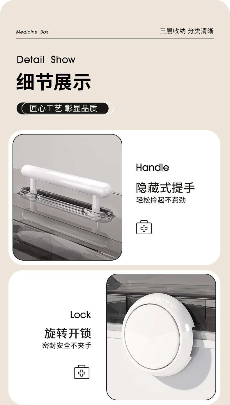大容量収納ボックスデスクトップ手持ち三層カバー付き透明薬品収納ボックス多機能クリエイティブ医薬ボックス