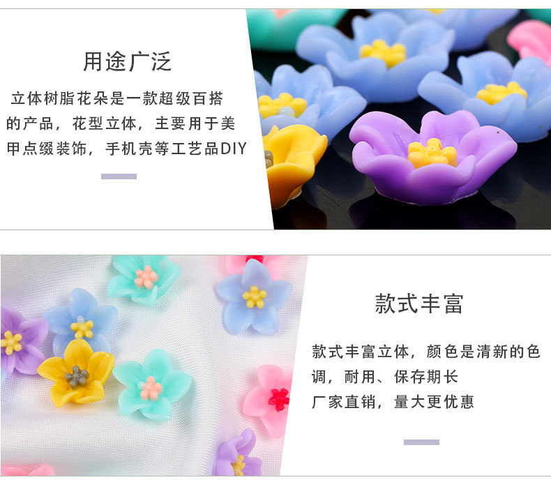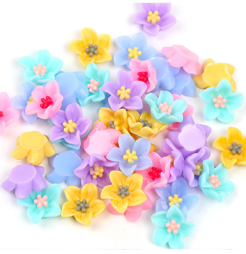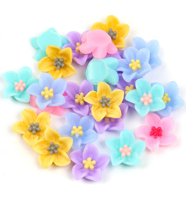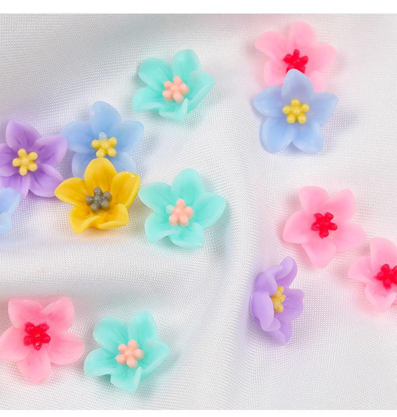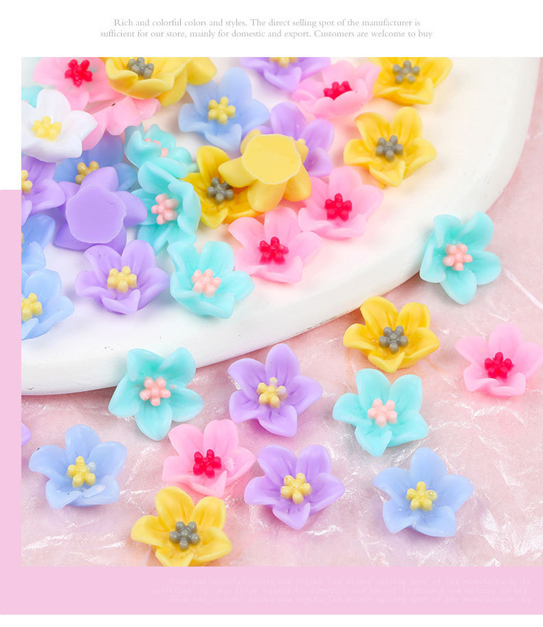 国境を越えた新しい樹脂立体的な2色の5枚の花びらの花アクセサリー、高価値のファッショナブルなフラワービーズ、カラフルなネイルアートアクセサリー
