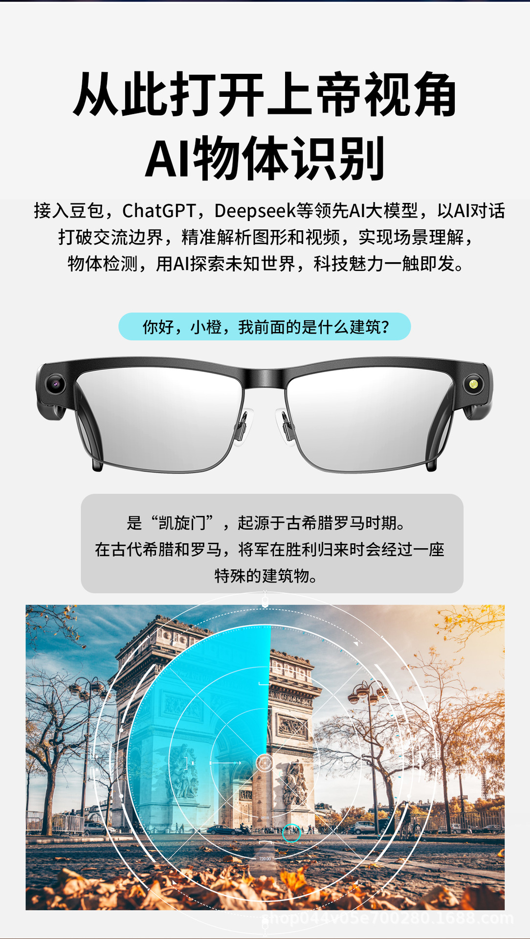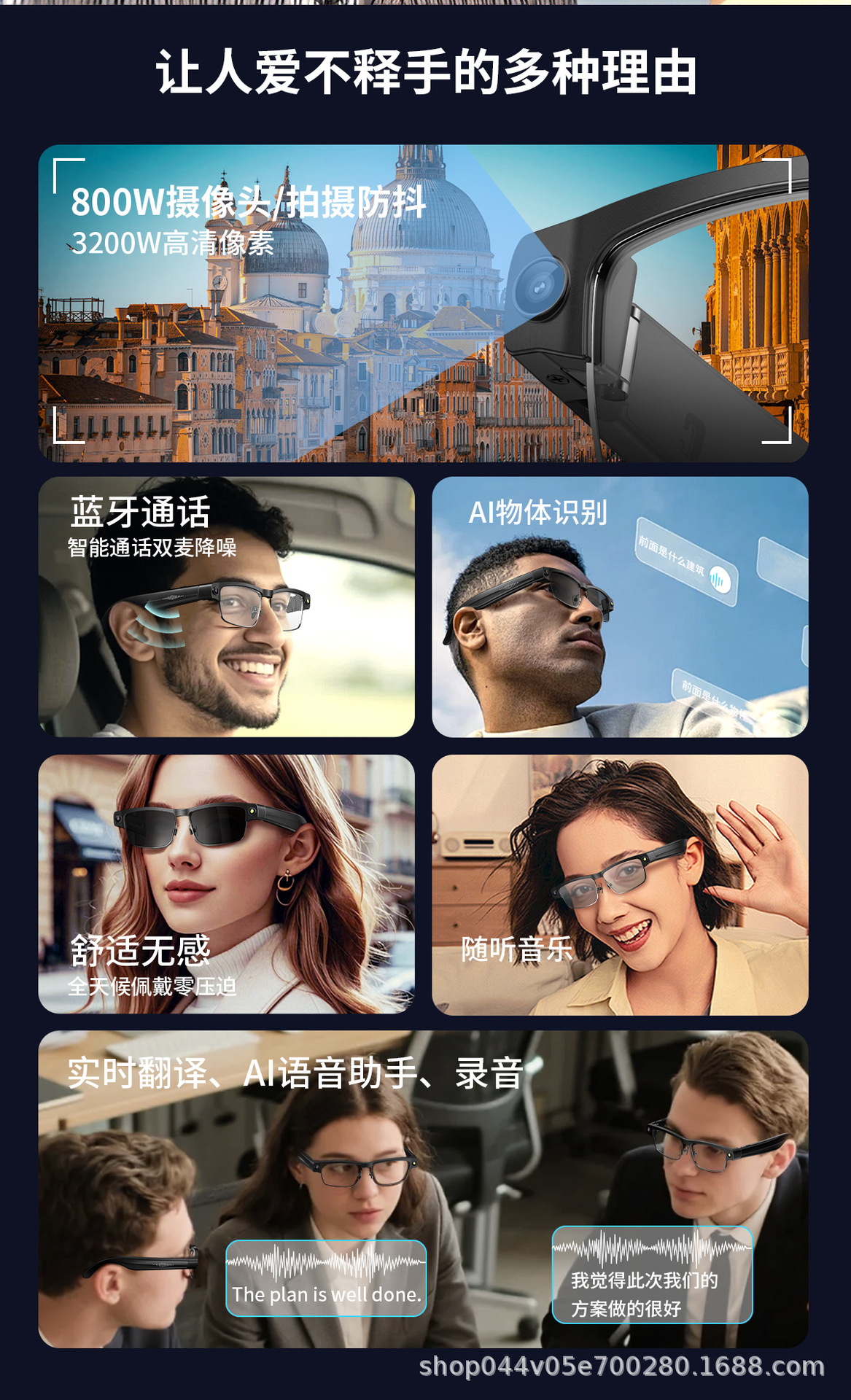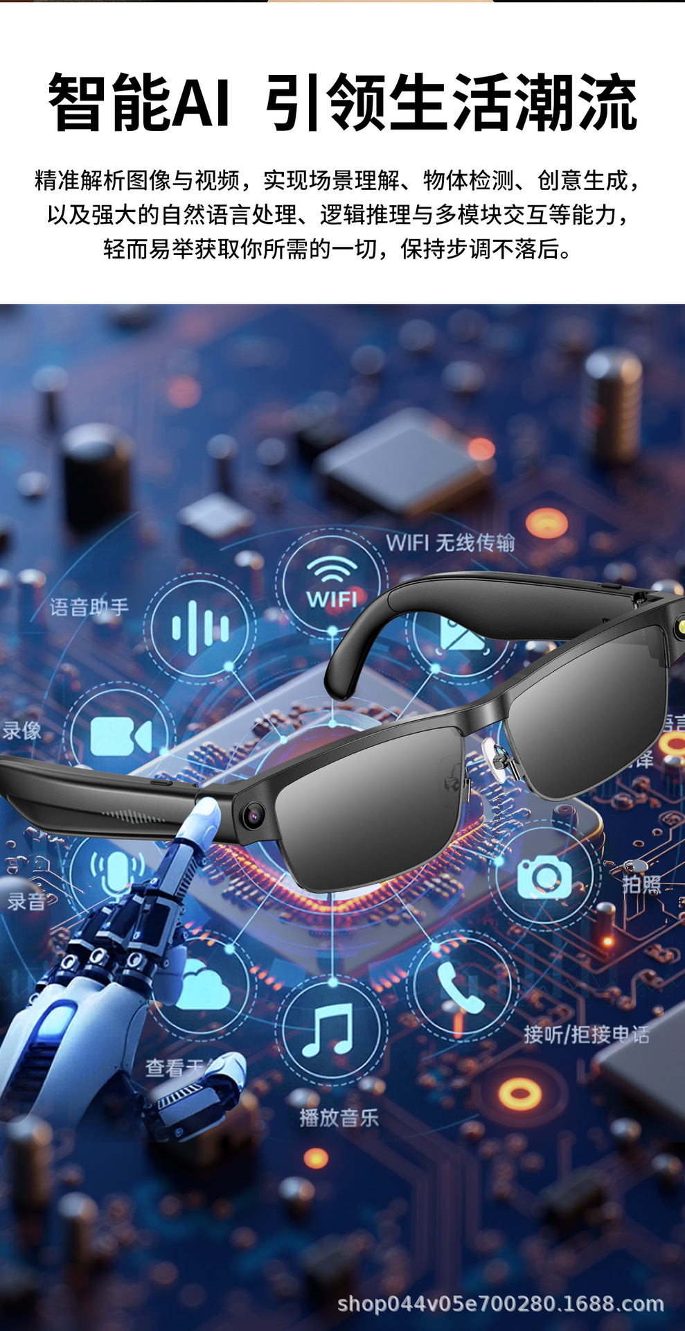Aiスマートグラス、充電ケーブル、説明書、メガネクロス、メガネバッグ、メガネレザーケース、メガネケース