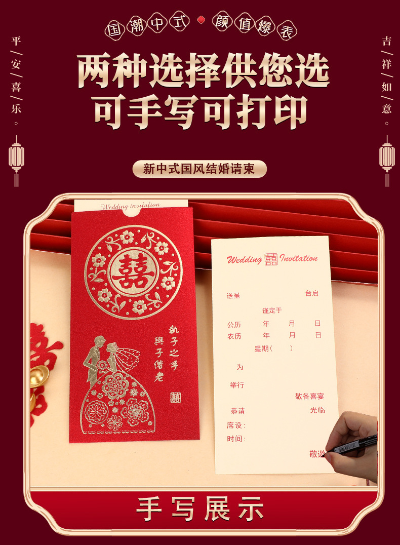 中式烫金婚庆邀请函宝宝满月请帖百天酒席喜帖搬家乔迁请柬手写版