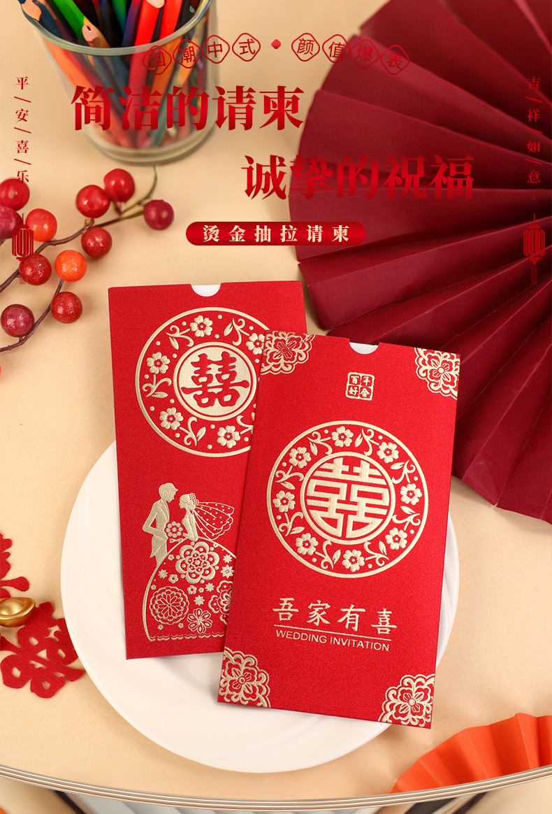 2025新款中式烫金抽拉请柬现货创意结婚婚礼请帖搬家乔迁邀请函