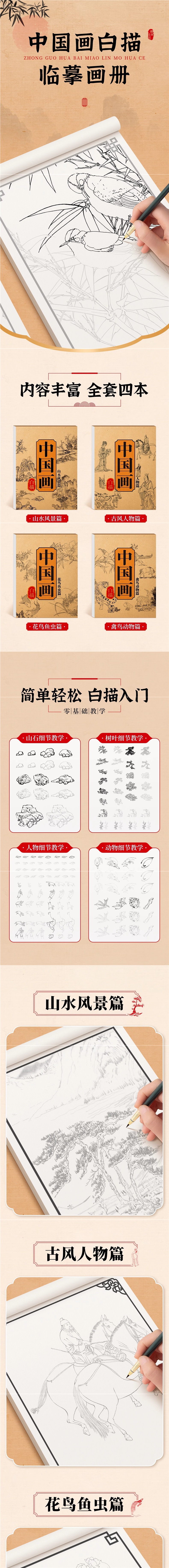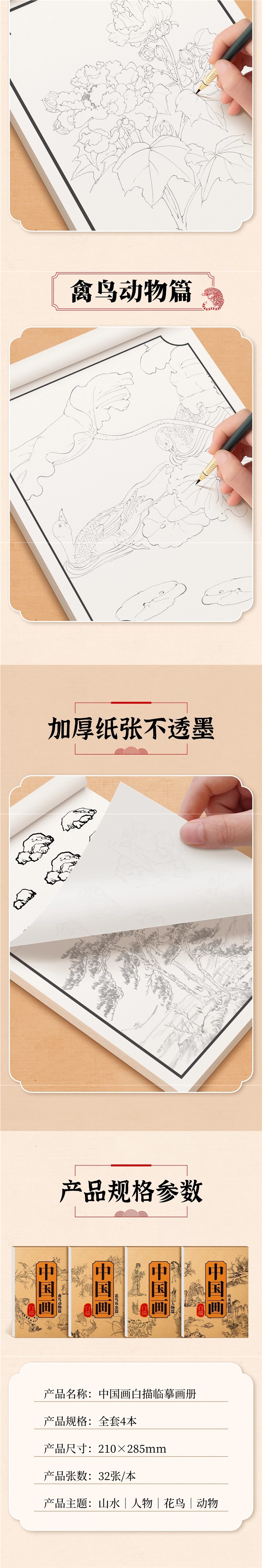 中国画白描入门描摹本国画工笔国风古风花卉人物套装底稿线稿描红