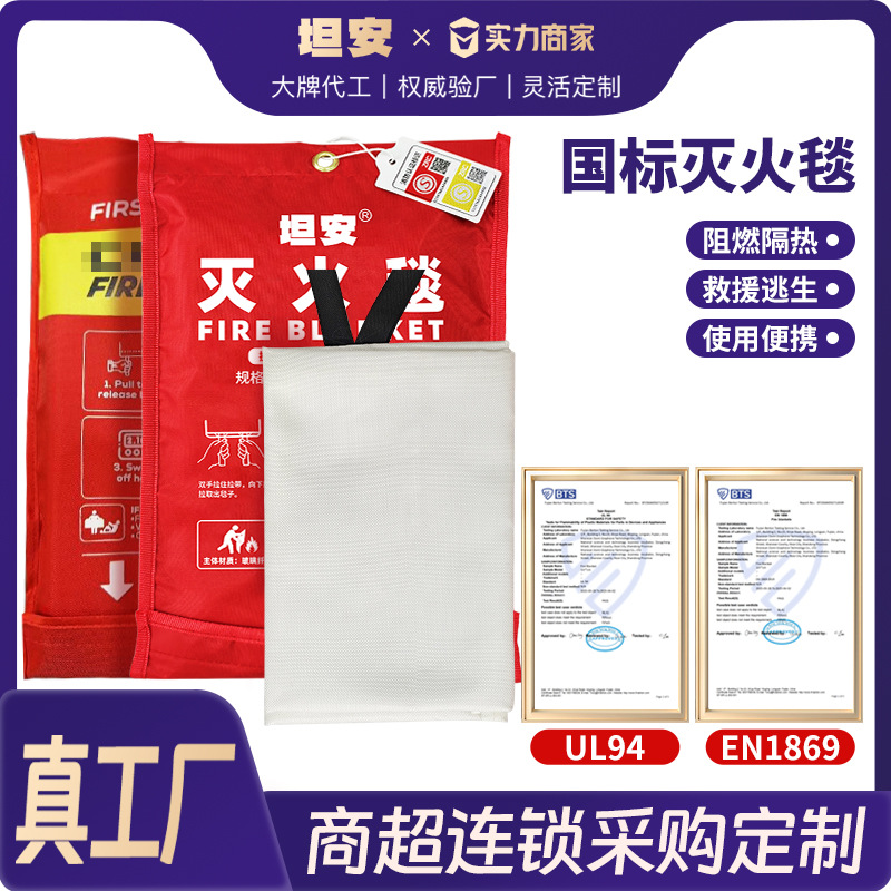 跨境消防灭火毯餐饮店户外逃生英文国标灭火毯酒店玻璃纤维防火毯