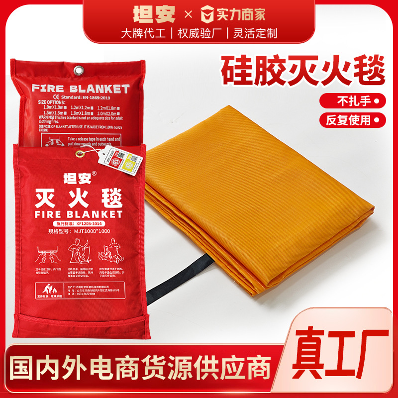 灭火毯玻璃纤维硅胶防火毯加油站消防酒店厨房阻燃防火布亚马逊