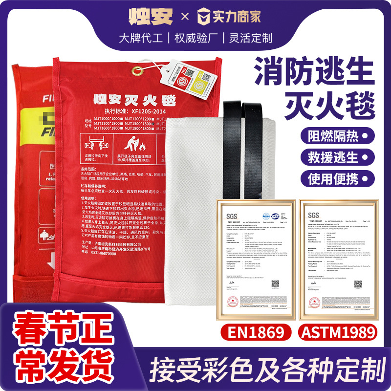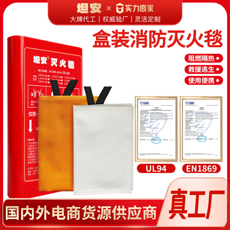 商超热卖灭火毯玻璃纤维加油站批发防火毯防火布阻燃消防毯亚马逊