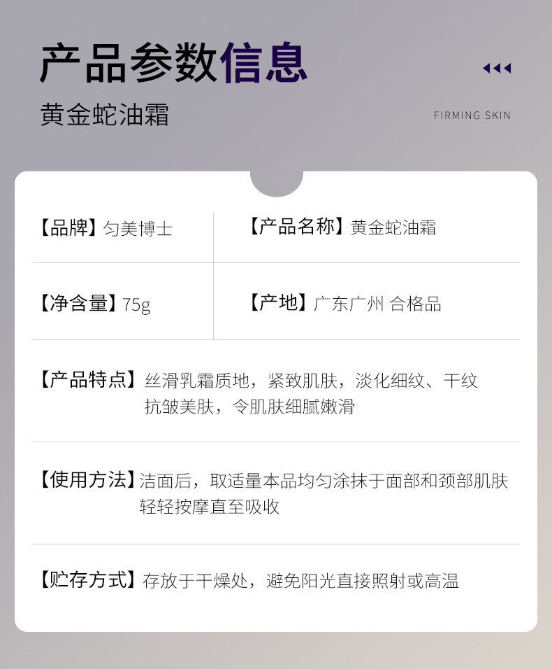 均美博士黄金蛇油霜は小紋の繊細な肌を改善して水を補給して顔の首を潤すことができるクリーム75g