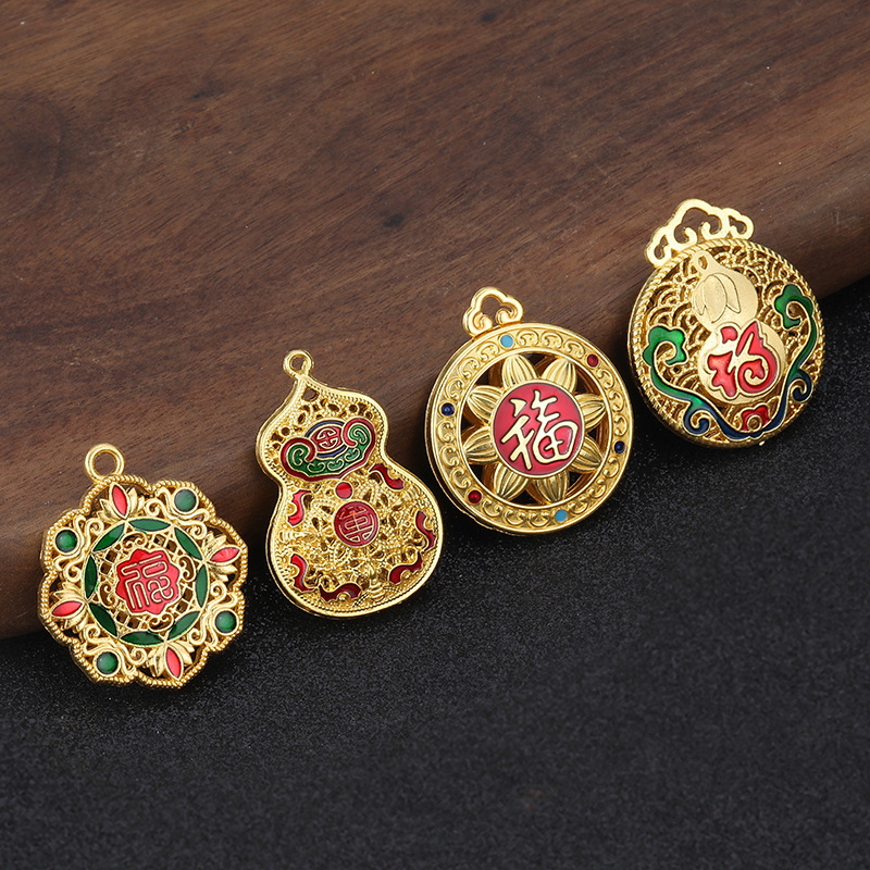 ダントツ部品透かし彫り平安祥雲瓢箪六字真言福禄景泰藍エナメル彩diyアクセサリーペンダント