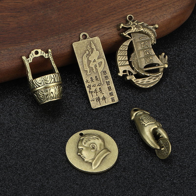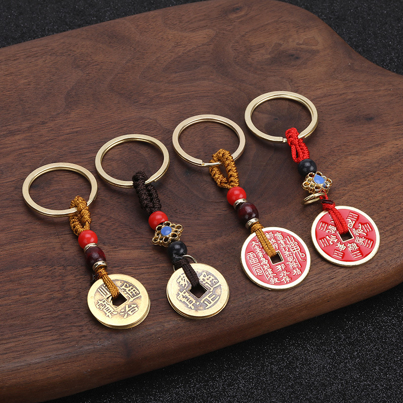 メーカー卸売り赤紐黄縄五帝銭祥雲縄キーホルダー部品黄銅金属部品キーホルダーペンダント