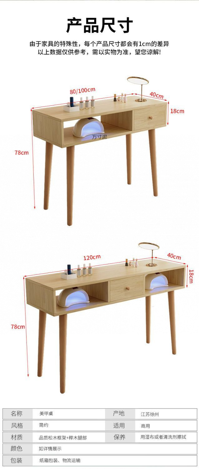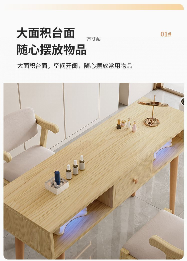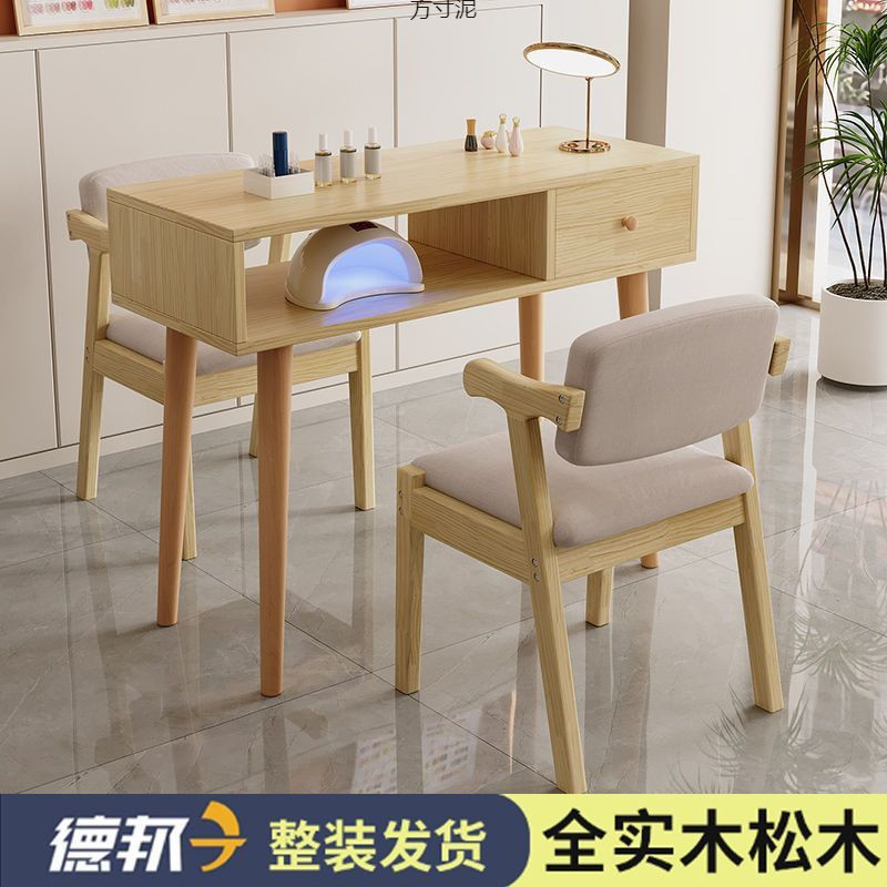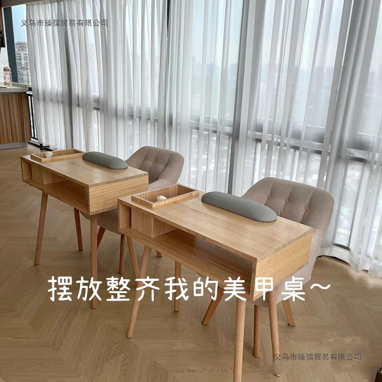 实木美甲桌网红日式美甲店桌子小型一人带抽屉美甲桌椅套装美甲台