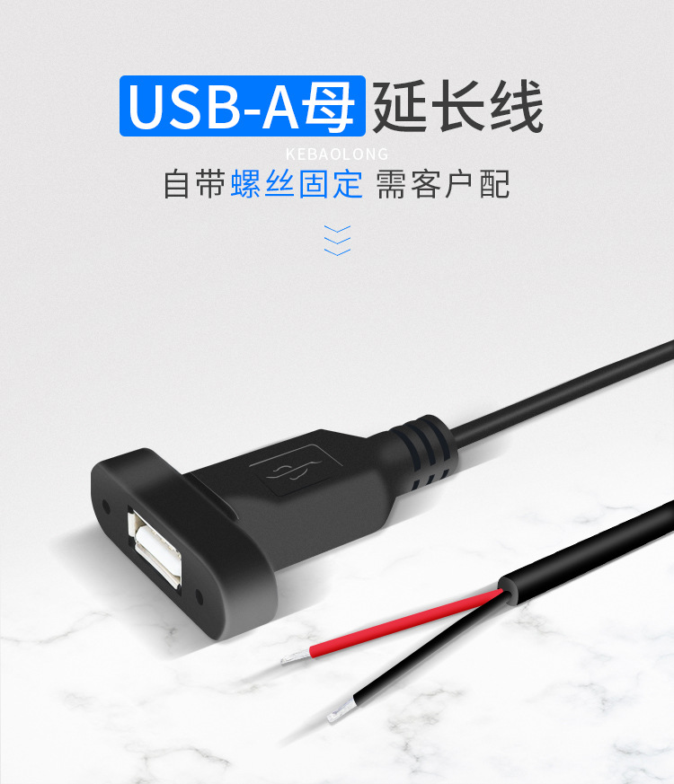 耳付きUSBメスケーブル 固定電源コード シャーシベゼルパネル延長ケーブル ネジ穴付きUSB-Aメスソケット