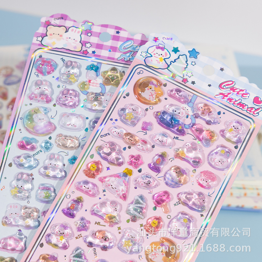YTES子供漫画小清新奨励夢ウサギ水晶レリーフシール泡綿立体手帳装飾画