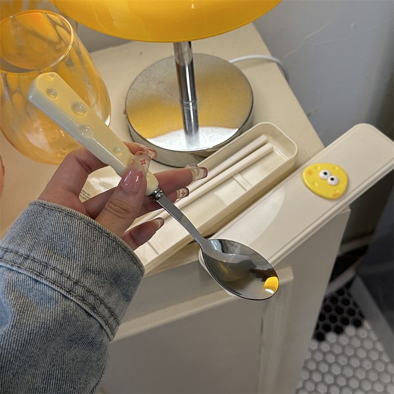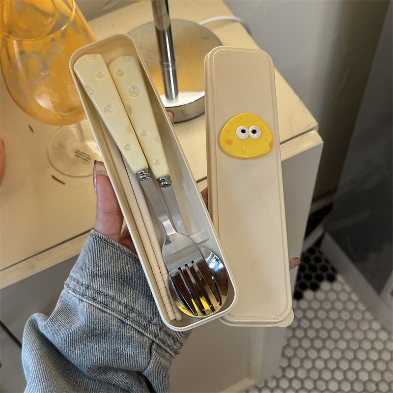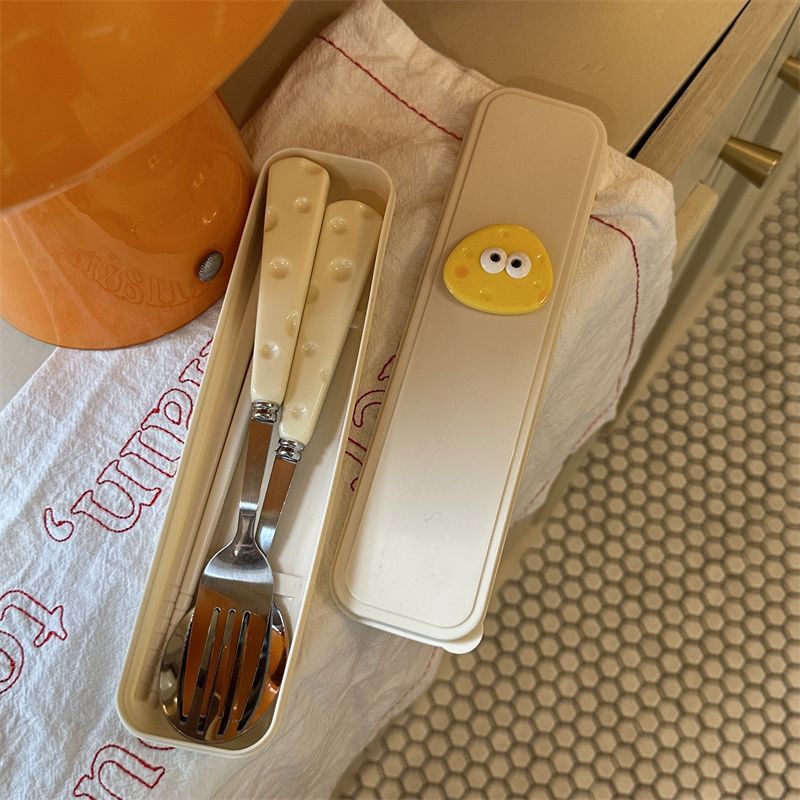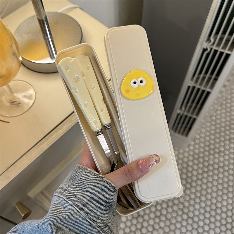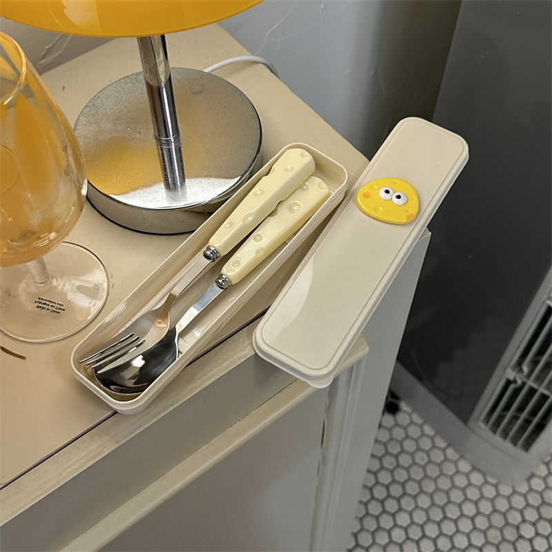 かわいいチーズスプーン、フォーク、箸の3点セット、学生や子供用のポータブル食器収納ボックスセットなし