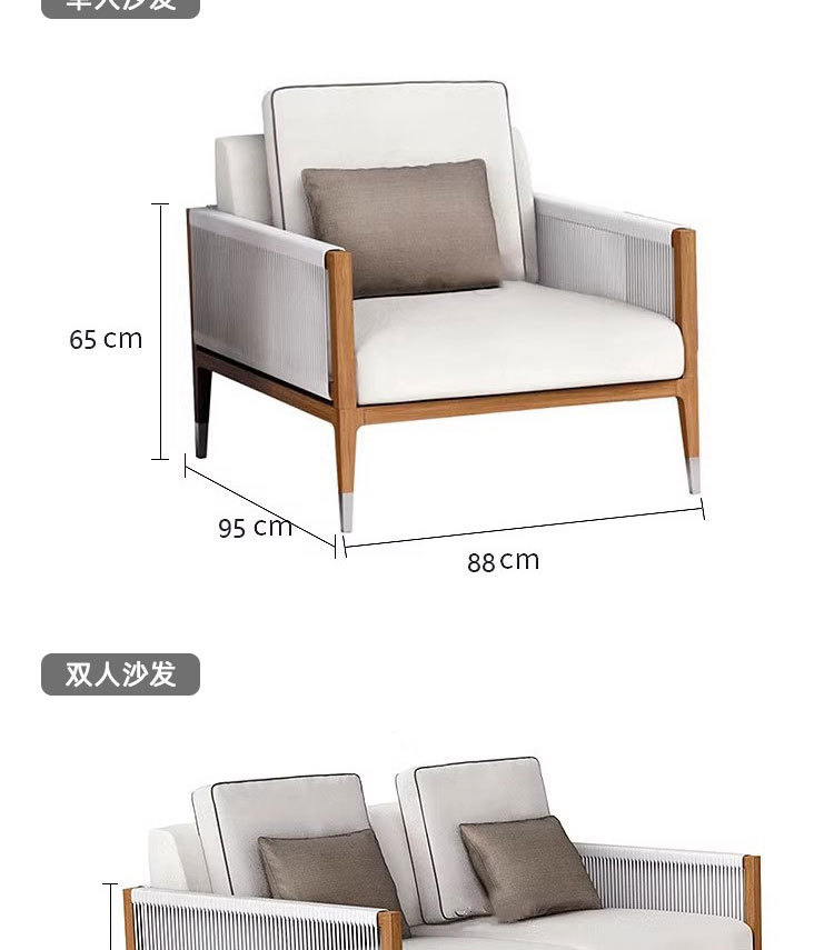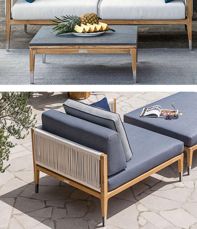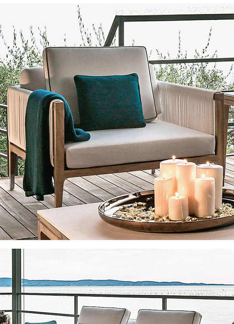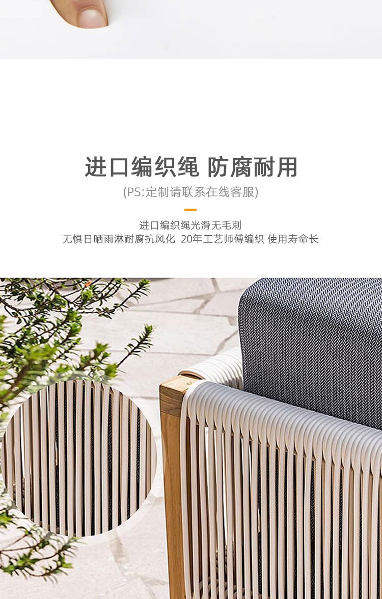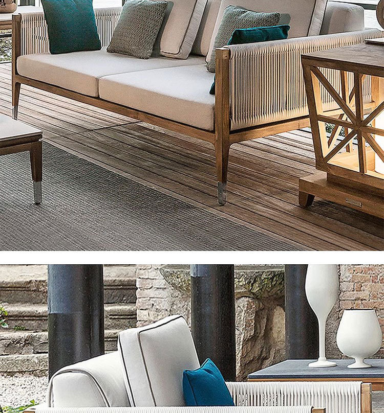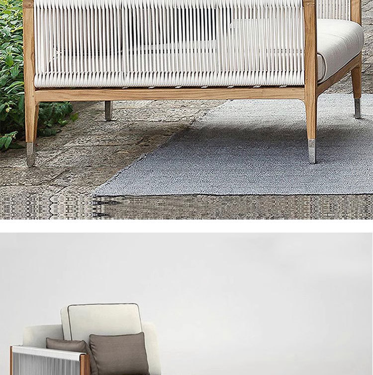 屋外チーク籐椅子ソファ中庭B&Bガーデンバルコニーレジャー籐防水編組ロープ組み合わせ屋外家具