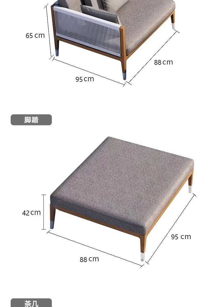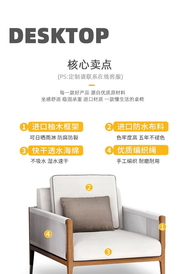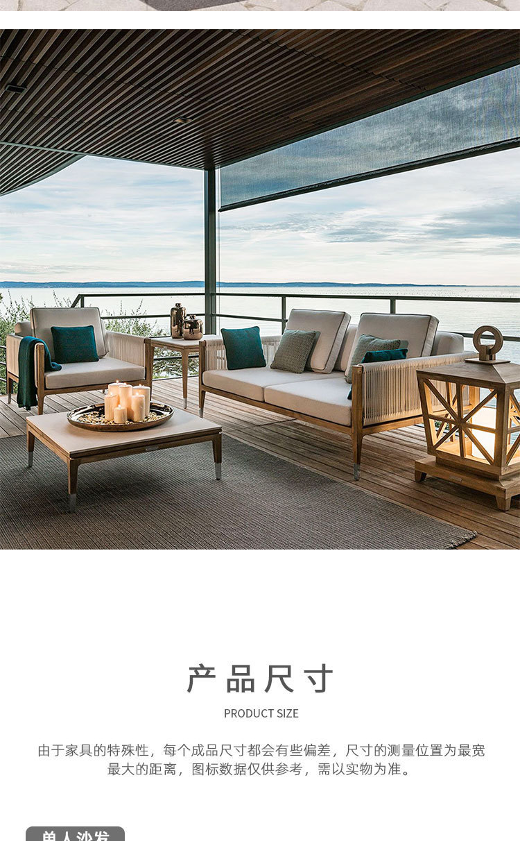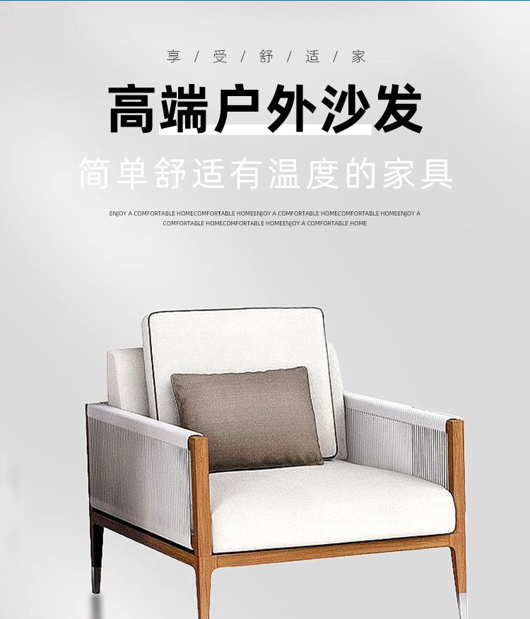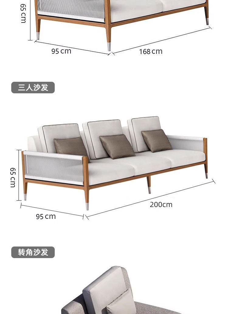 屋外チーク籐椅子ソファ中庭B&Bガーデンバルコニーレジャー籐防水編組ロープ組み合わせ屋外家具