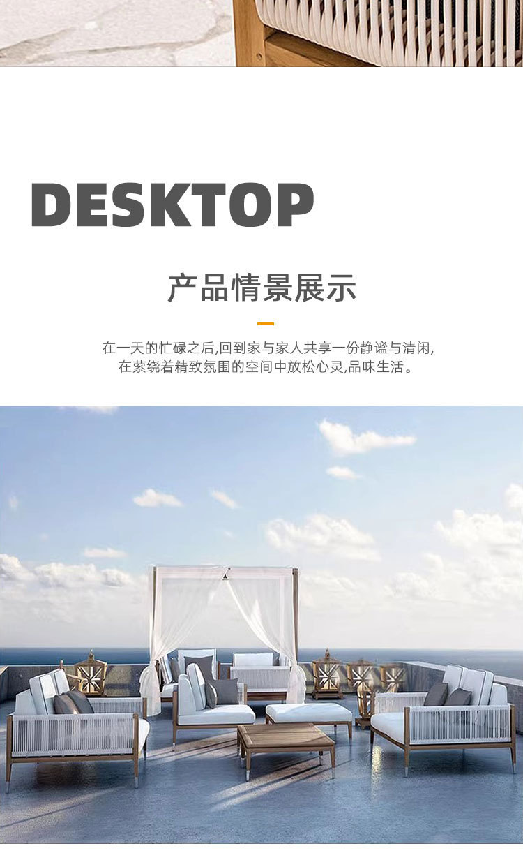 ホテルやB&B向けの屋外ロープ編みハイエンドソファコンビネーション、防水性と日焼け防止のヴィラ、屋外編み籐中庭テラスコンビネーション