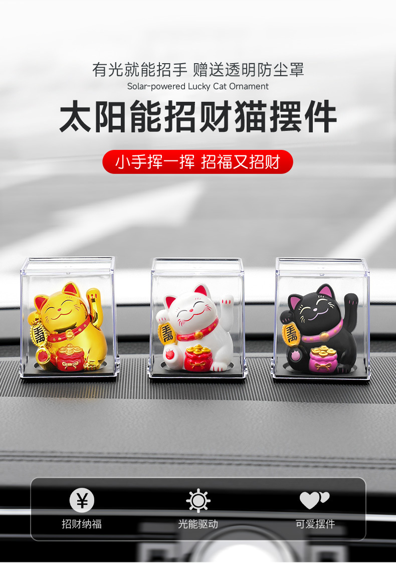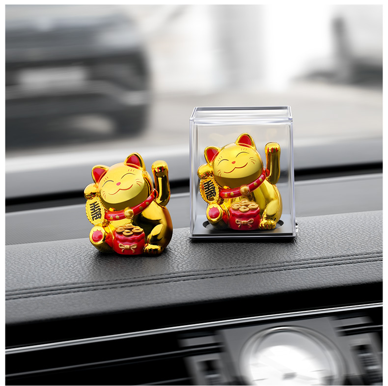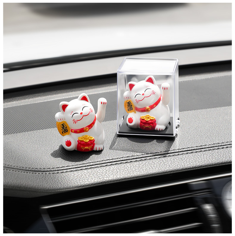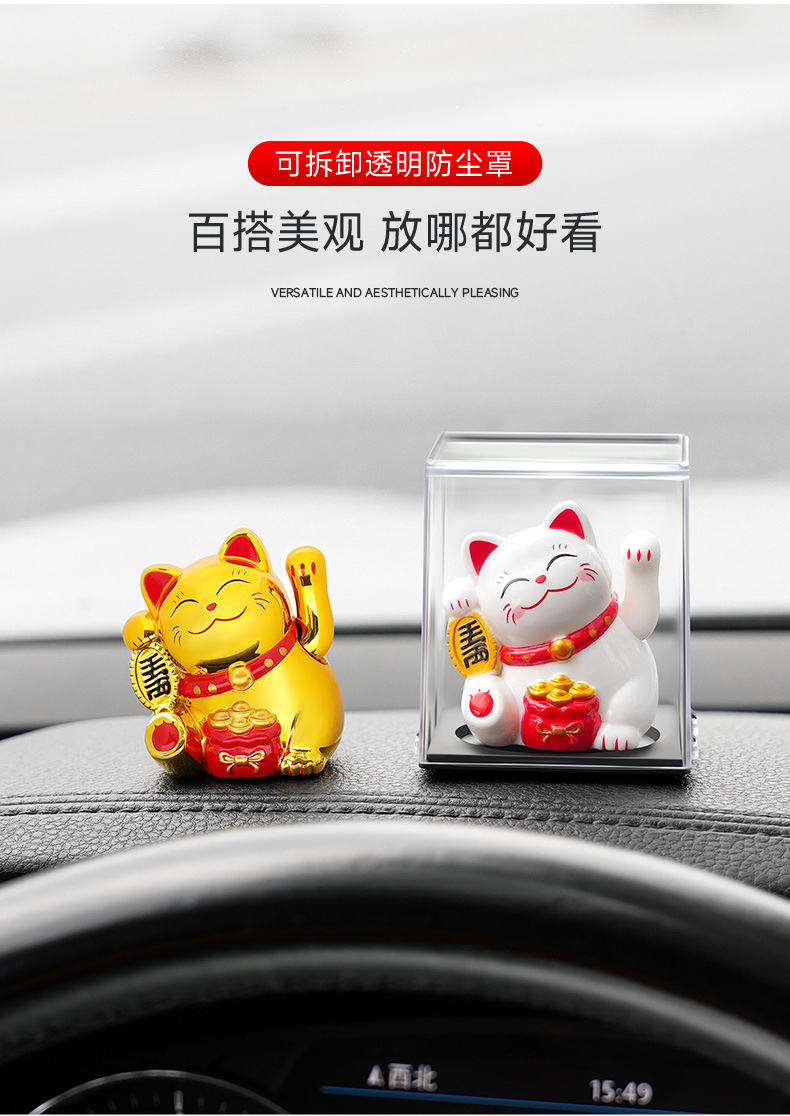 車のソーラーかわいい招き猫車の装飾品車のインテリアアクセサリーセンターコンソールディスプレイ車の装飾用品