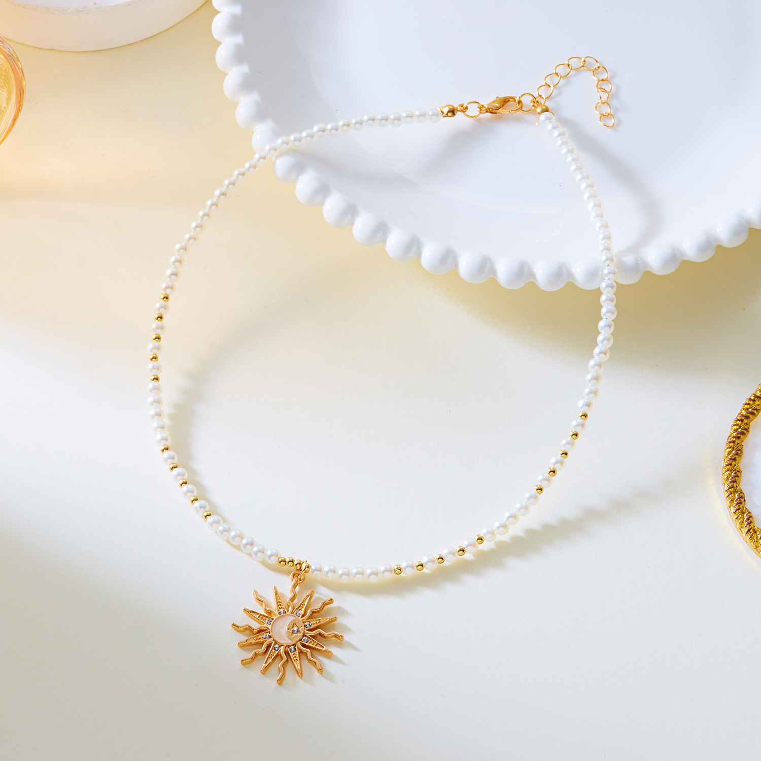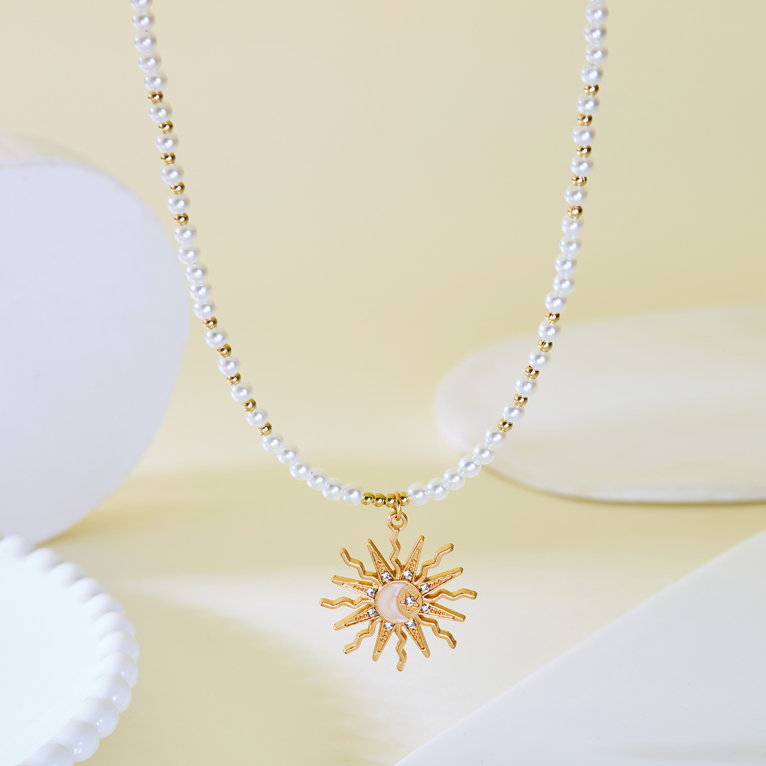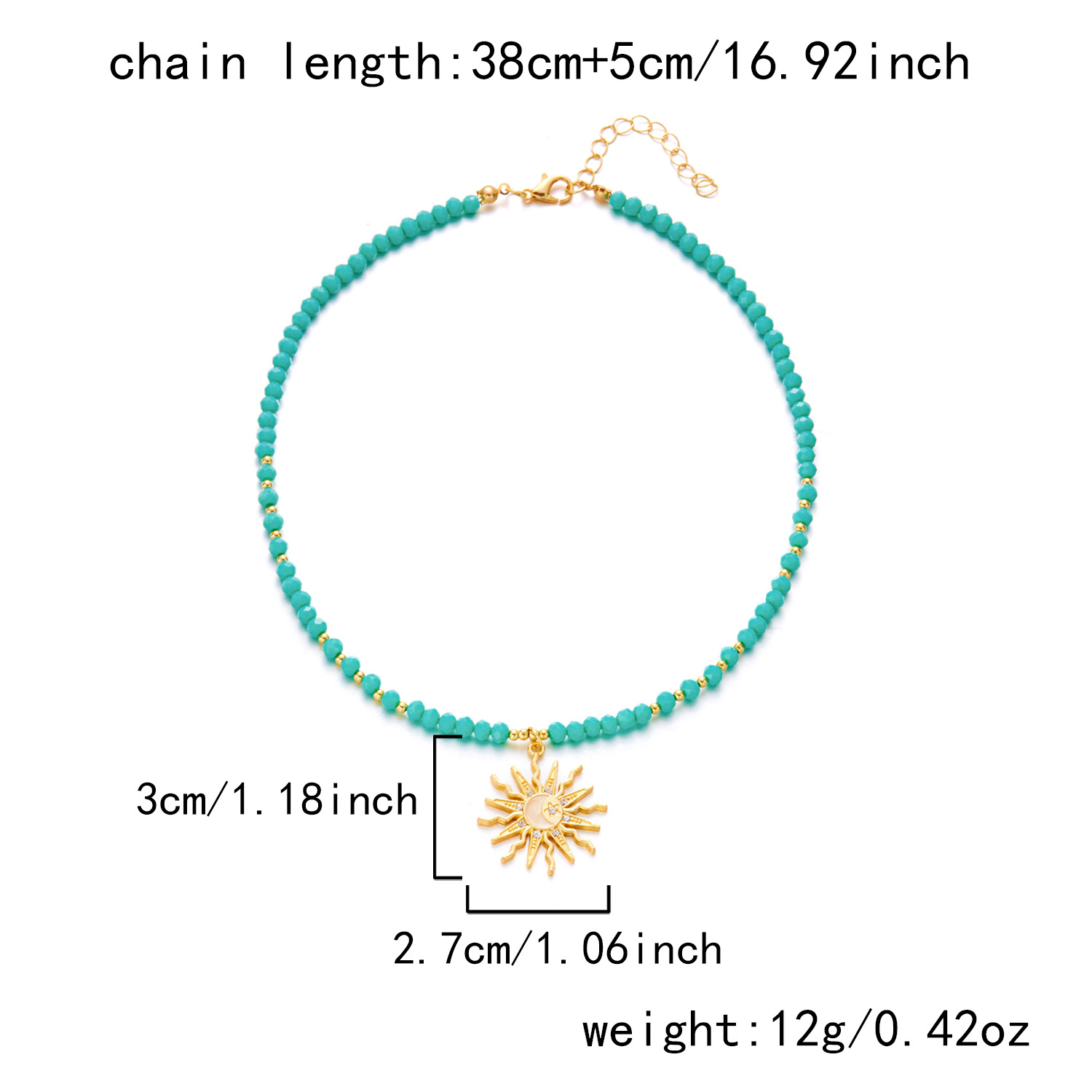 厂家直销波西米亚风百搭太阳吊坠项链欧美设计感米珠串珠项饰批发