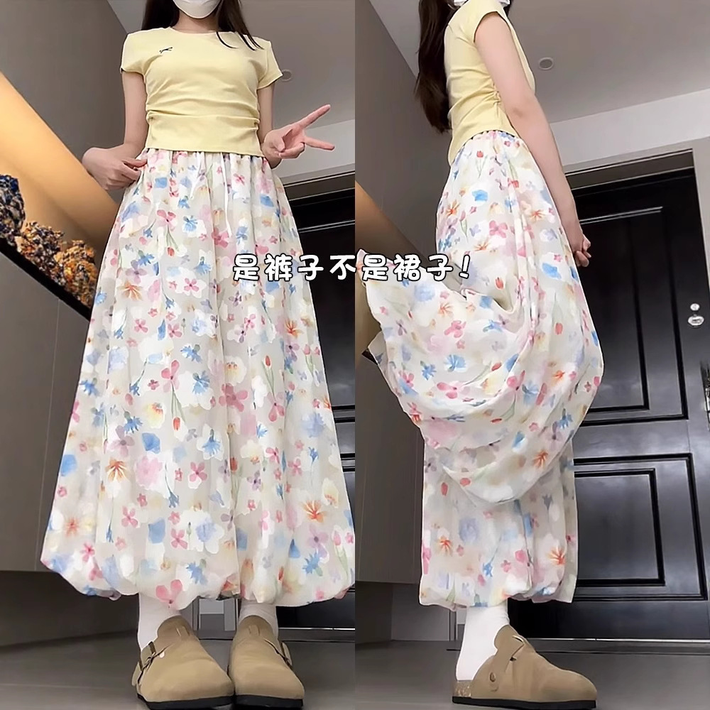 カラフルなつぼみワイドレッグパンツ女性の夏薄い 2025 新しいハイウエストドレープ小人ストレートカジュアルアイスシルクスカート