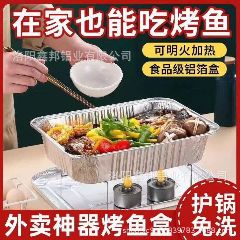 烤鱼外卖打包锡纸盒保温龙虾铝箔商用加厚可加热长方形一次性