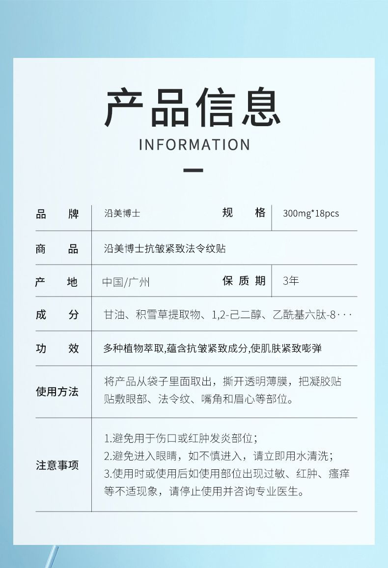 产品规格 沿美博士法令纹贴