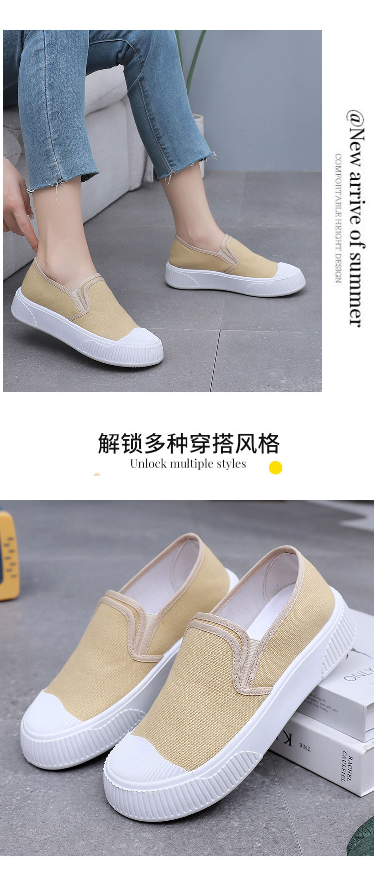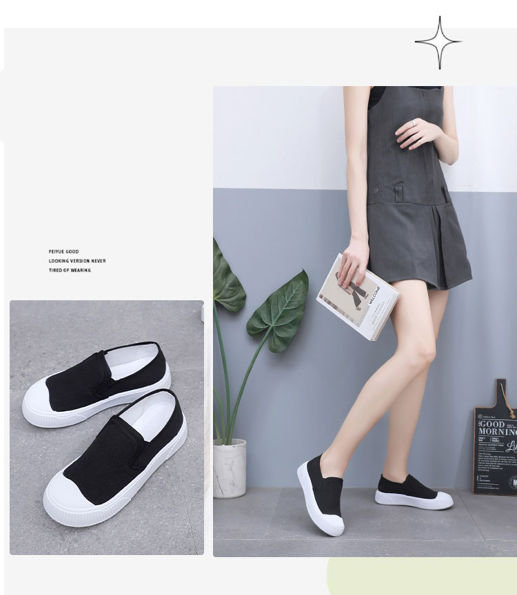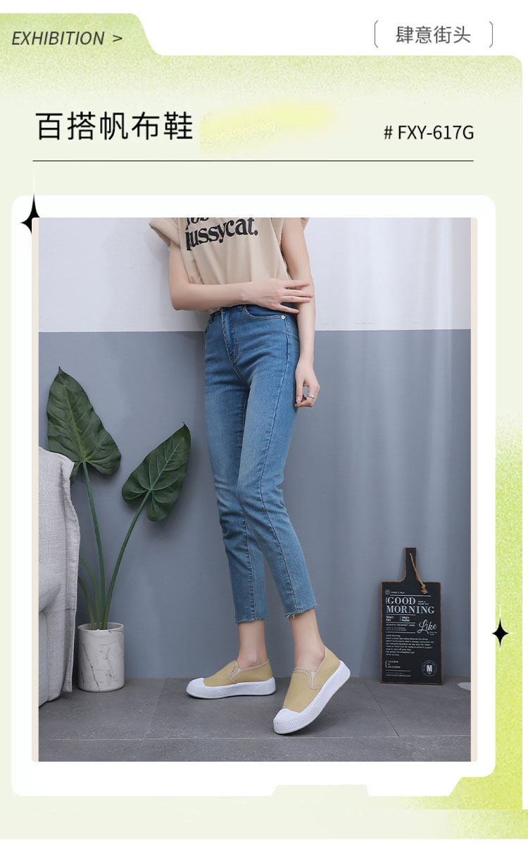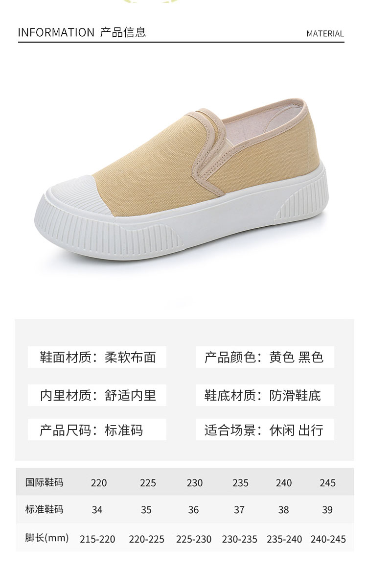 2025春のカップルのキャンバスの靴の女性のフラットの白い靴の足は怠け者の街頭の布の靴の男性の黄色の女性の靴を漕ぎます。