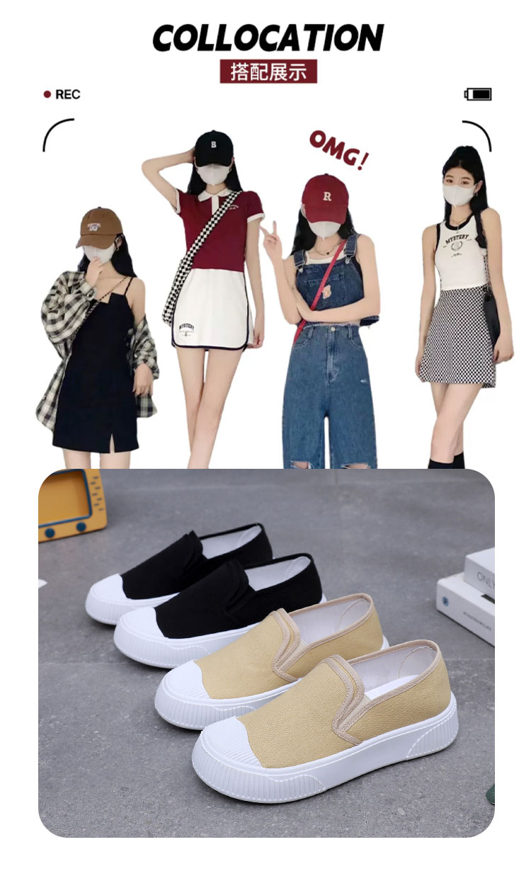 ビスケット厚底キャンバスシューズ女性用 2025 春夏新作多用途ラウンドトゥソフトソールロートップスリッポンカジュアルシューズ