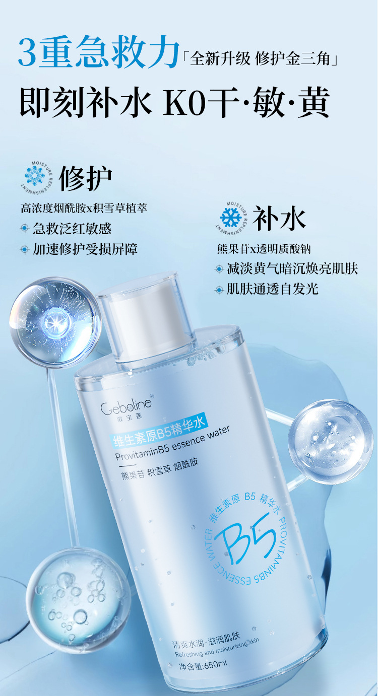 爽肤水B5积雪草补水保湿舒缓湿敷水收缩毛孔女男士精华水正品官方