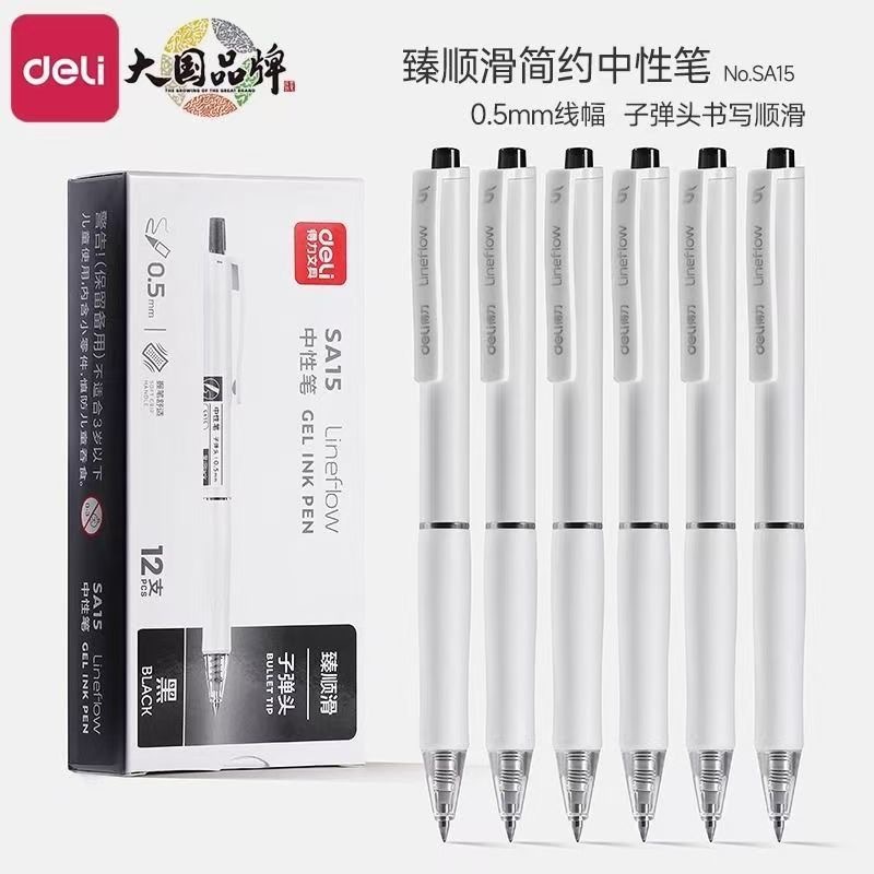 得力SA15刷题小白笔按动中性笔子弹头速干顺滑学生考试专业按动笔
