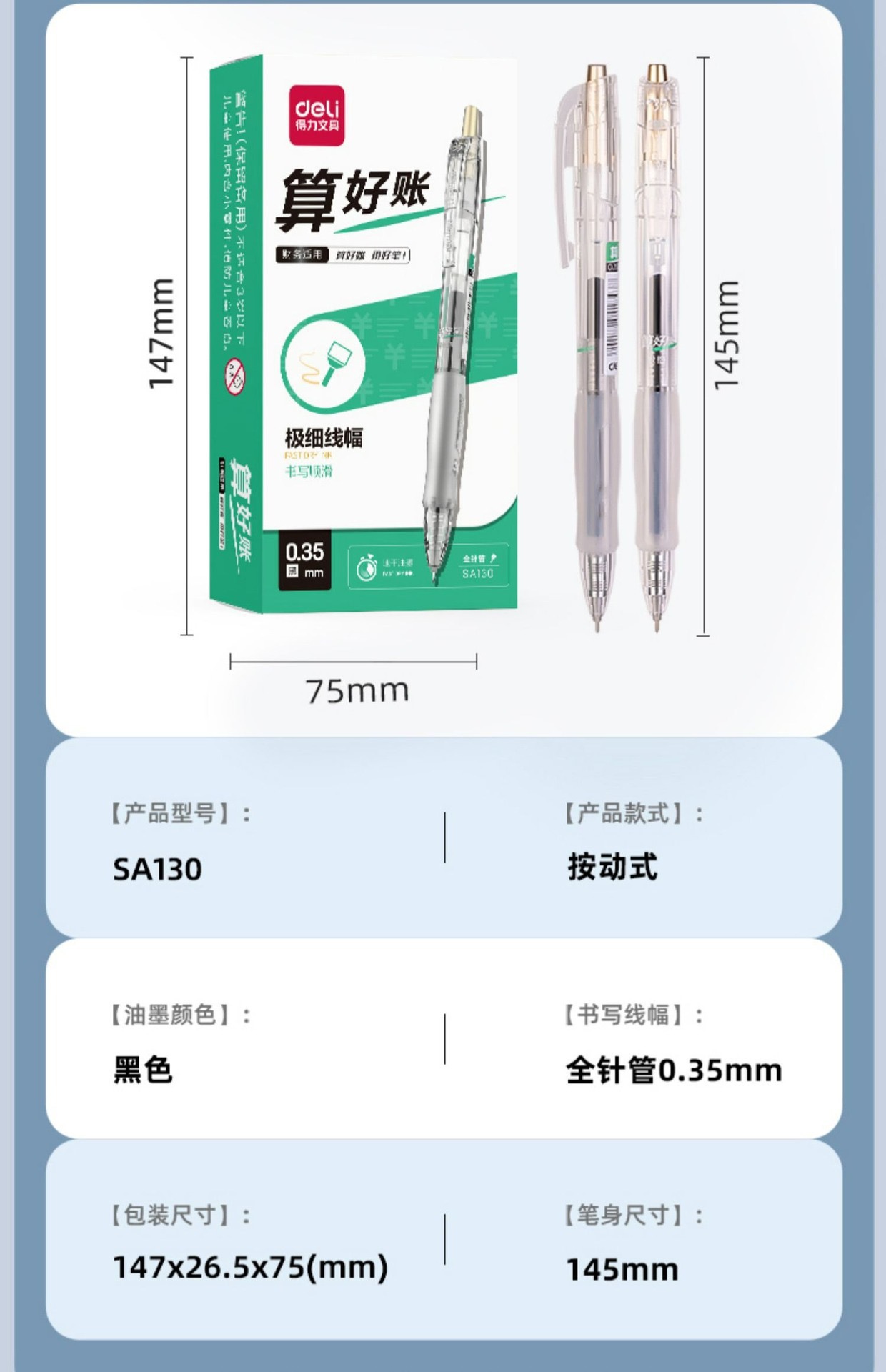 笔芯颜色 黑色SA130(1支),黑色A122(1支)