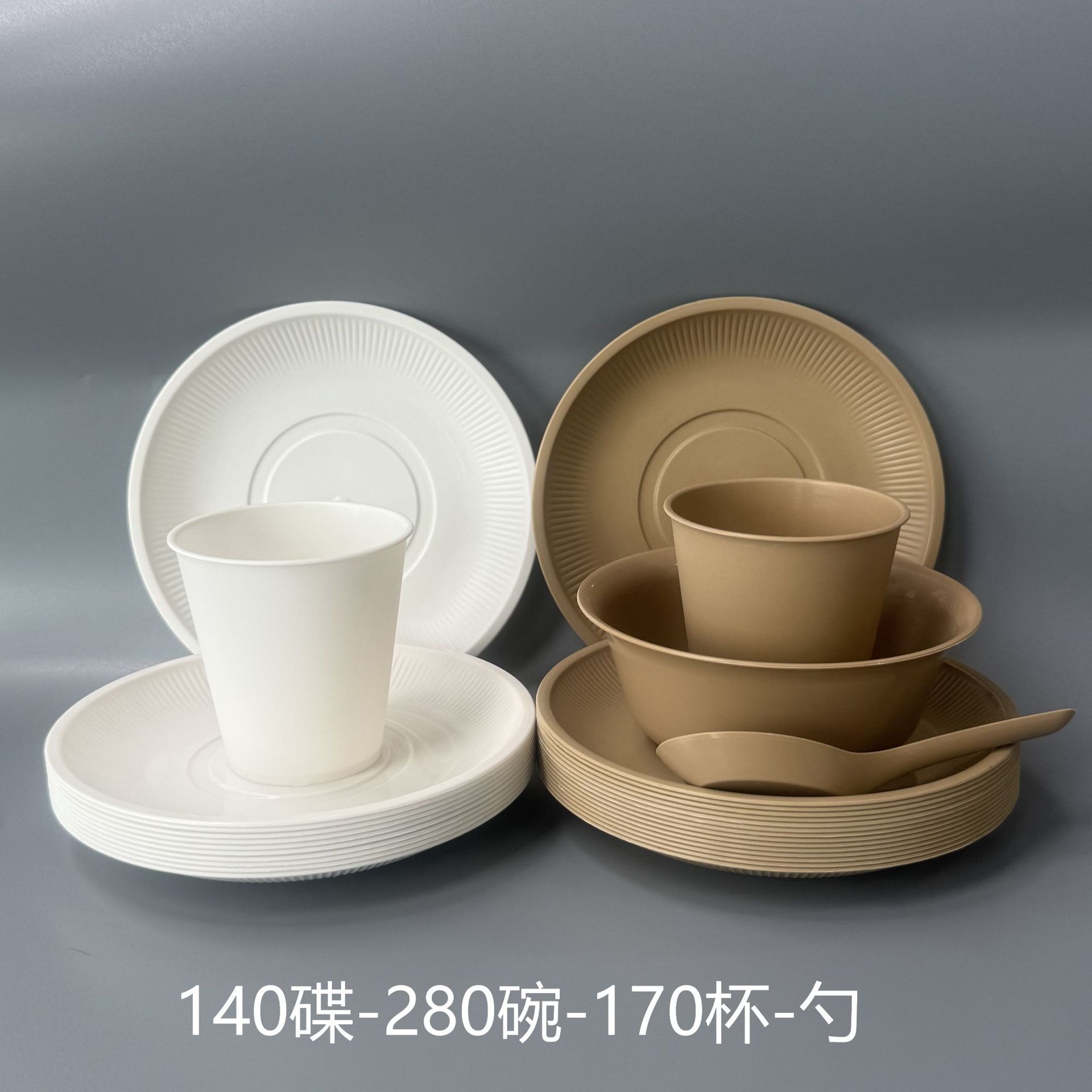 屋外ピクニック使い捨て籾殻ボウル、プレート、カップ、スプーン、パーティー分解性カップ、食器、カップセット
