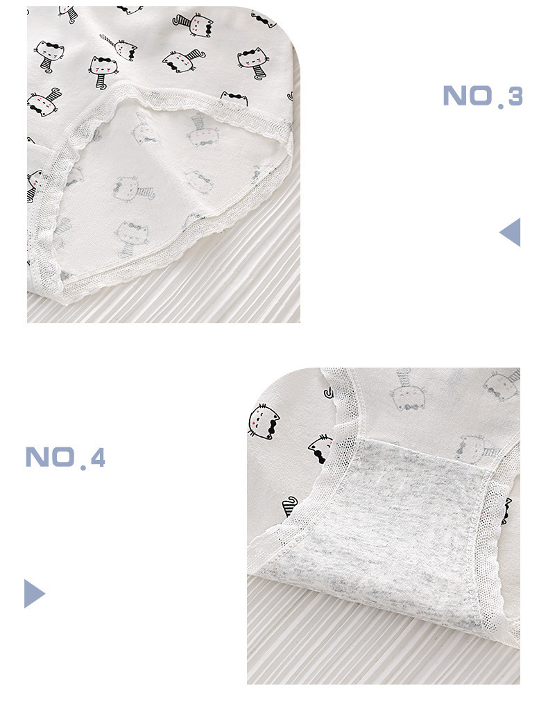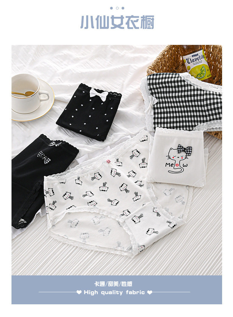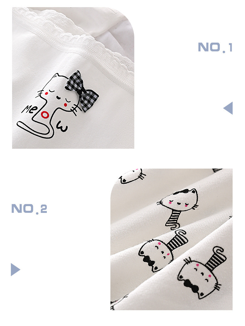 日本のシンプルな白黒の猫のプリントのかわいい少女の下着の女性の純綿の股の包みのお尻の中で腰の学生の三角のズボン