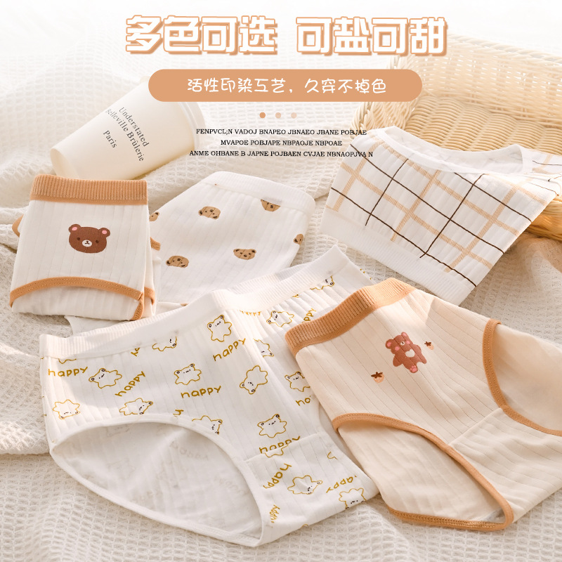 韓国版のかわいいクマプリント下着女性用ミッドウエスト少女漫画学生薄型通気性ブリーフクロスボーダー