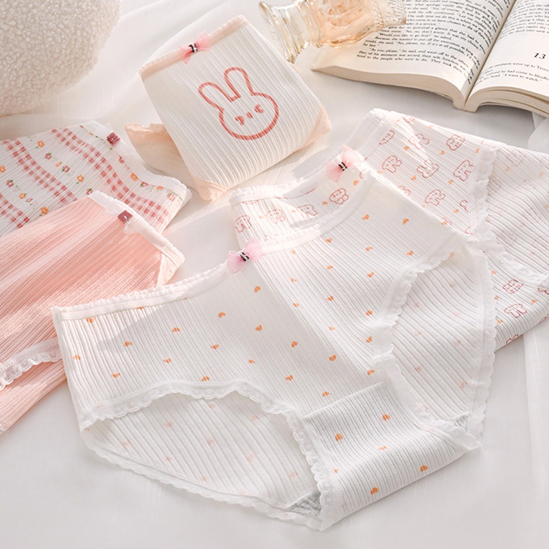 日系粉色兔可爱少女大学生简约透气中腰女士短裤三角内裤跨境批发