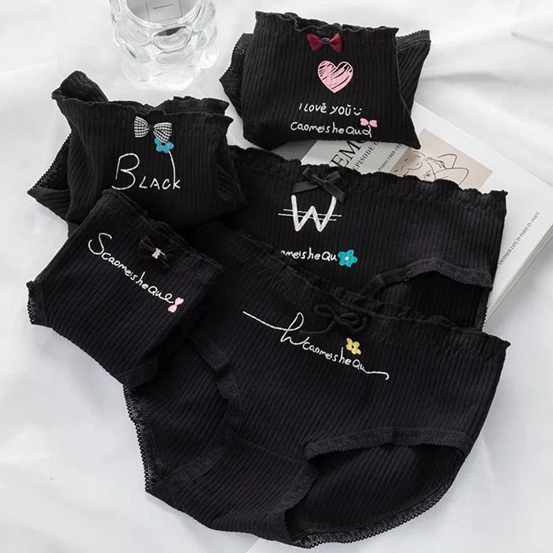 黑色内裤女日系甜美中腰大码字母小花少女学生包臀三角裤跨境批发