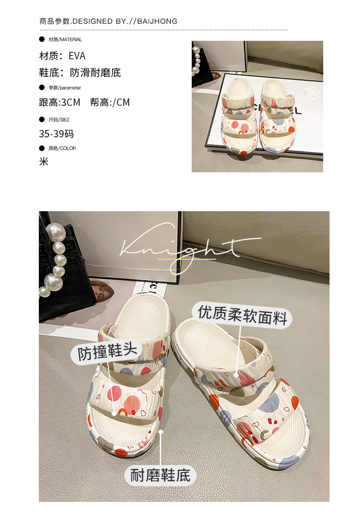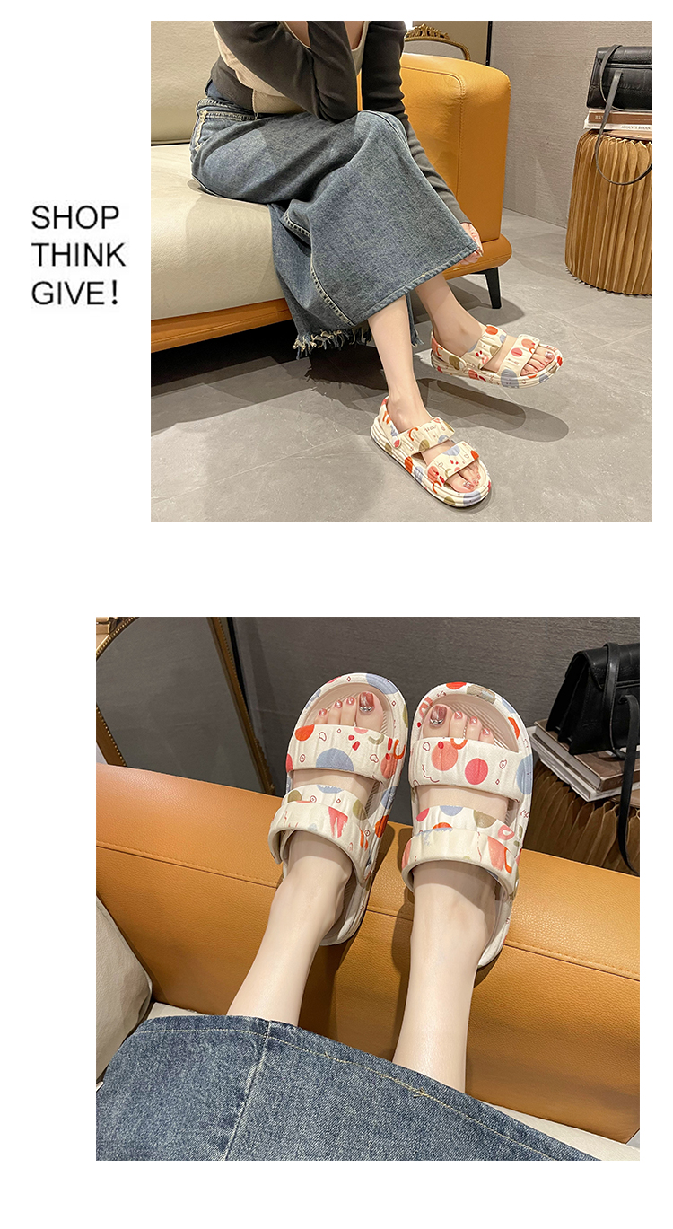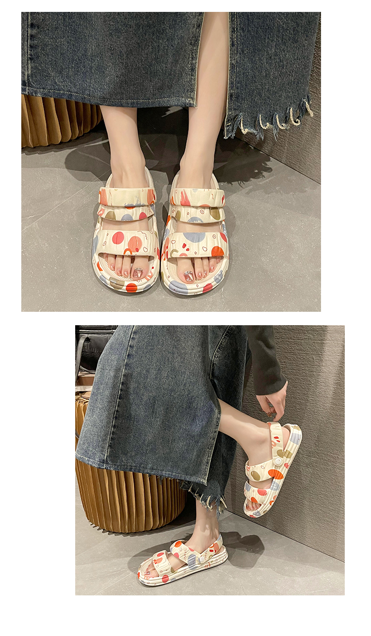 2025 新しい夏のアウターウェアかわいいバルーンプリントサンダル女性のダブルストラップ厚底ツーウェアノンスリップビーチサンダル