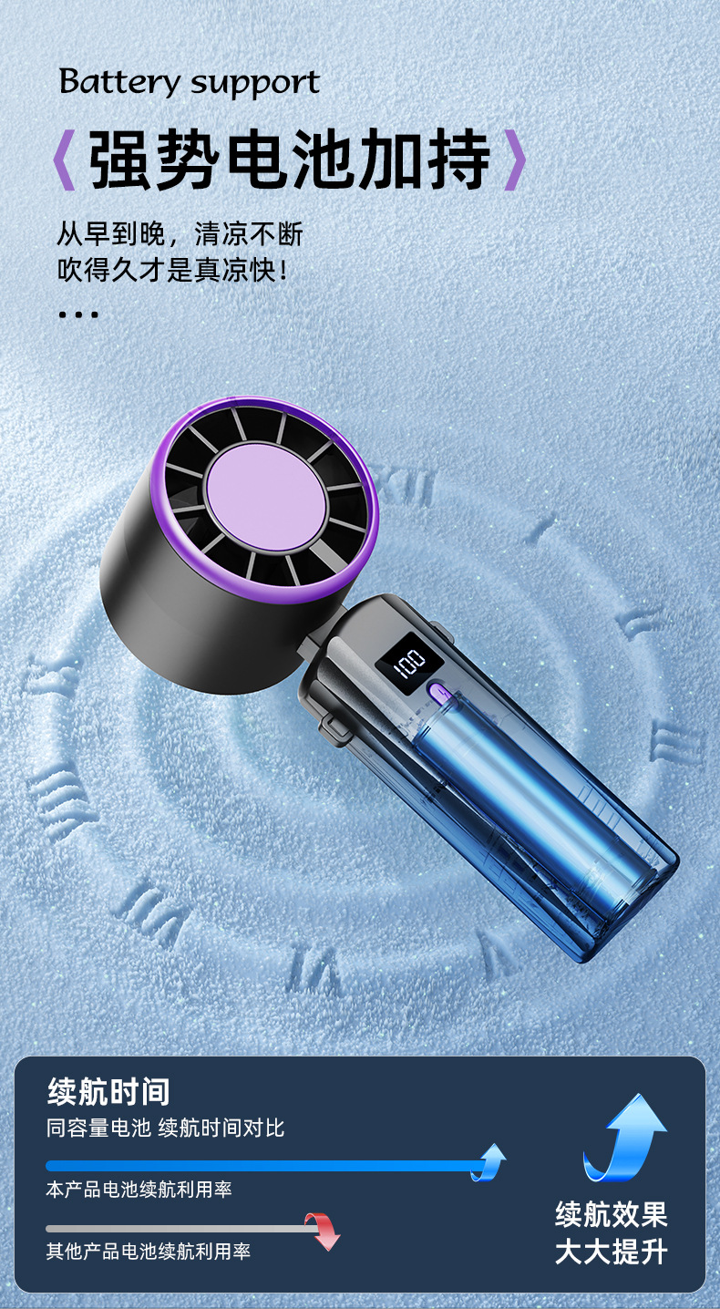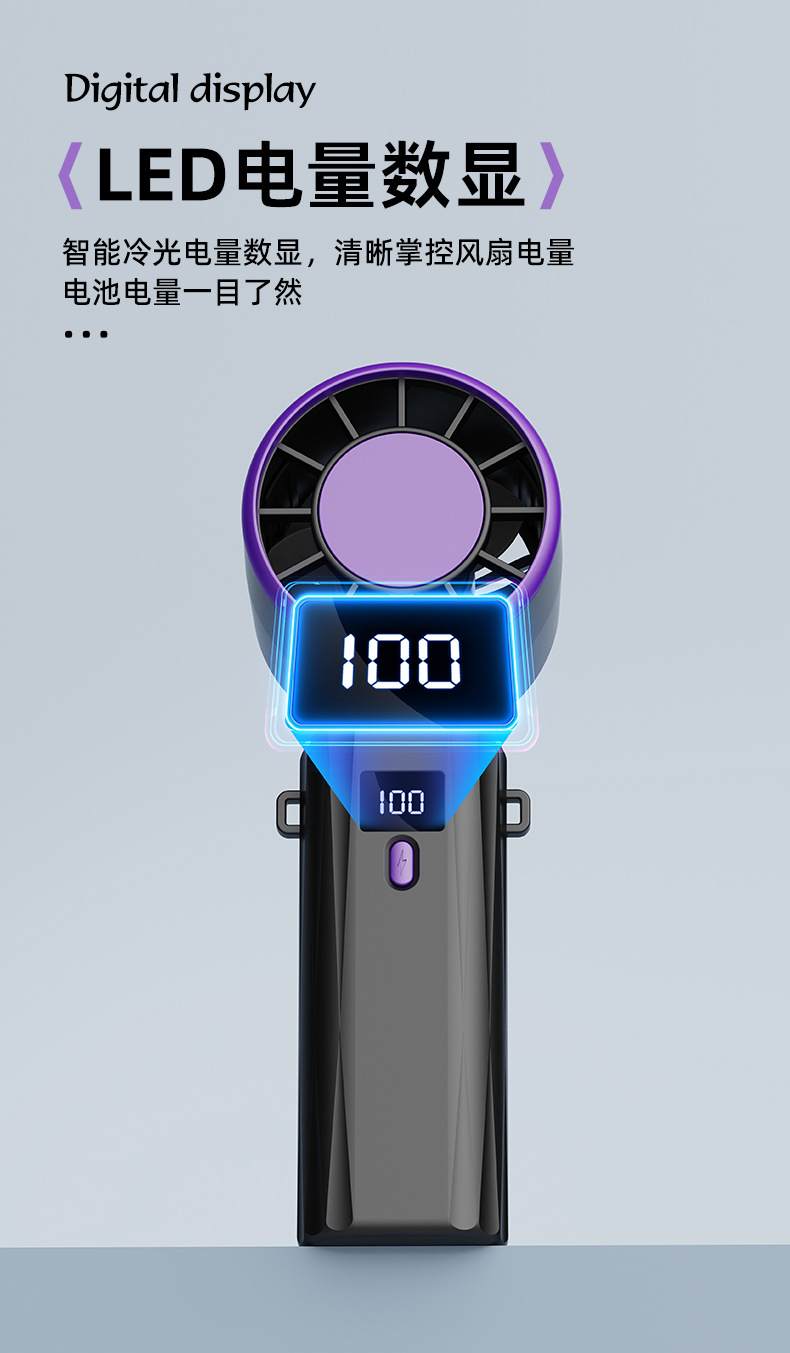 屋外デスクトップポータブル USB 充電デジタルディスプレイ長いバッテリー寿命折りたたみ電動ファン新しい高速ハンドヘルドファン