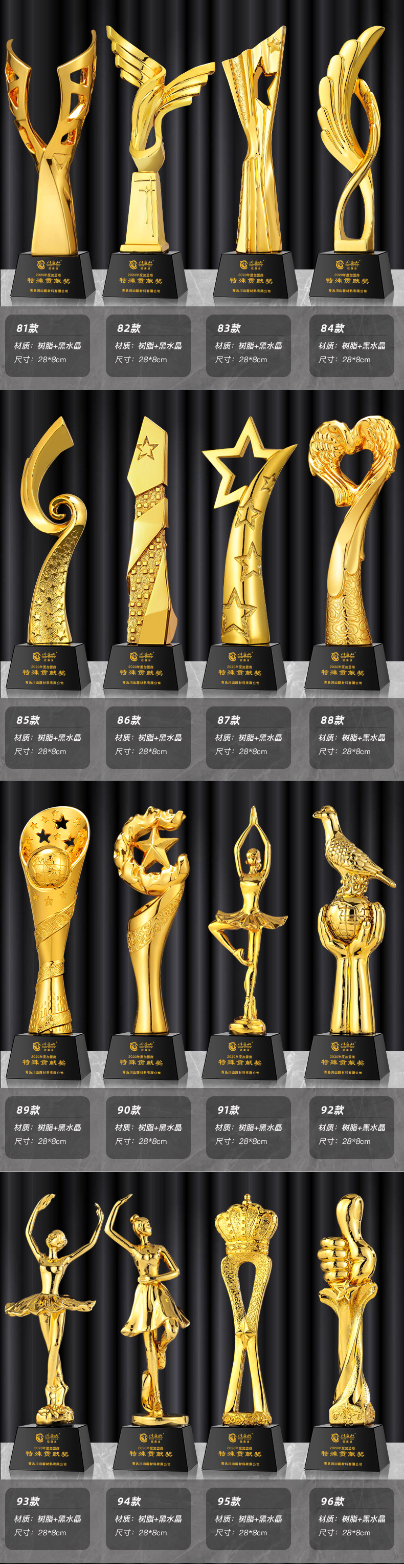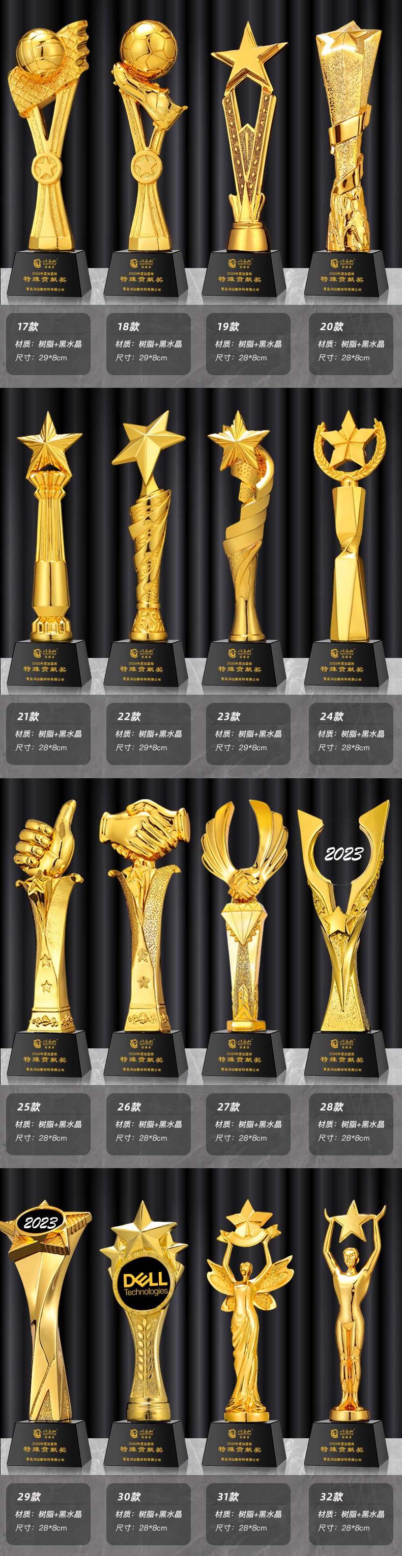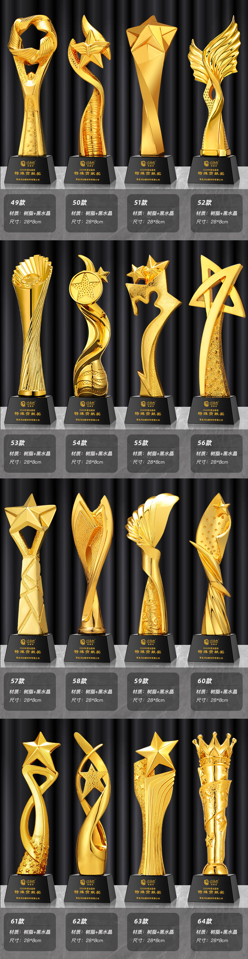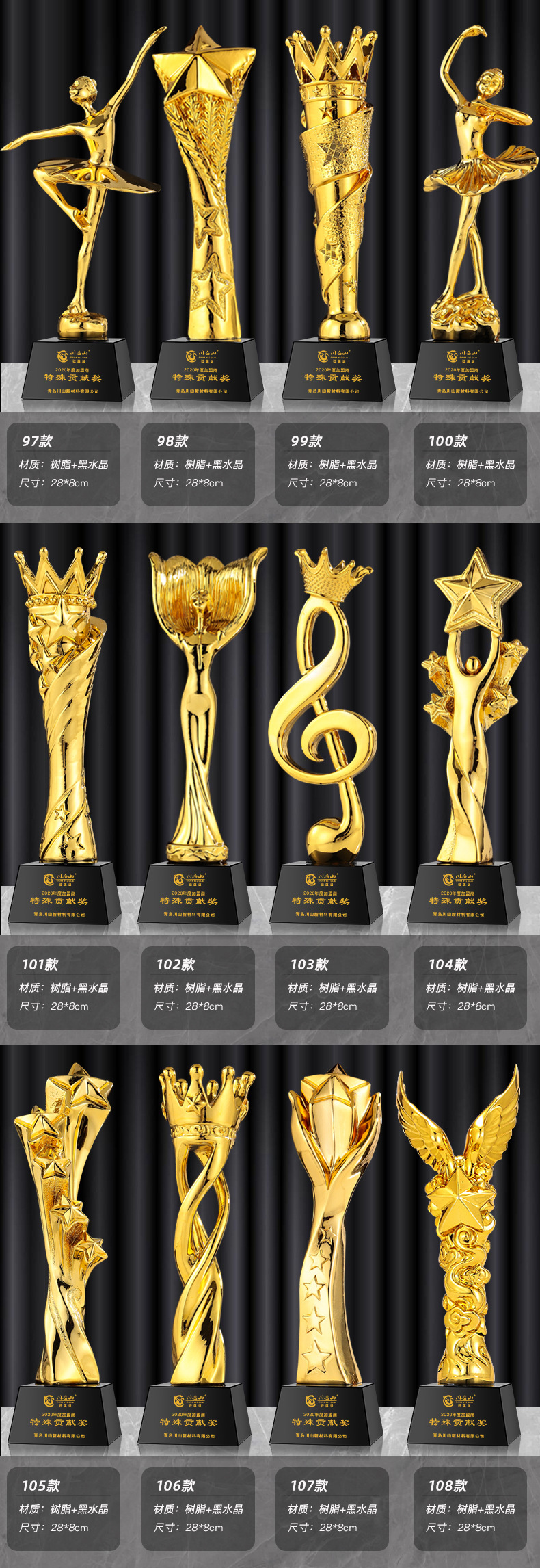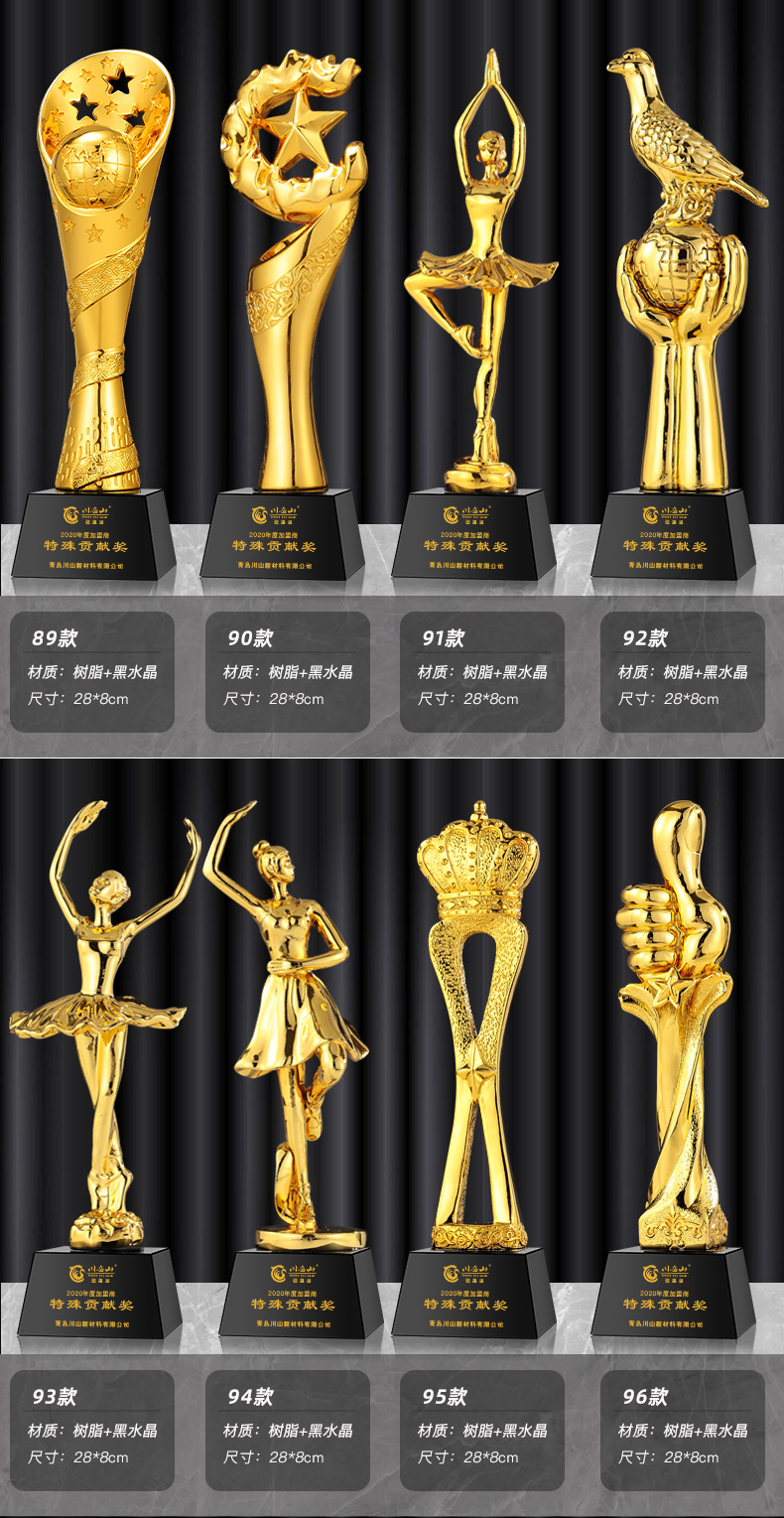 一体树脂奖杯舞蹈赛事创意金银铜五角星皇冠员工年会比赛颁奖