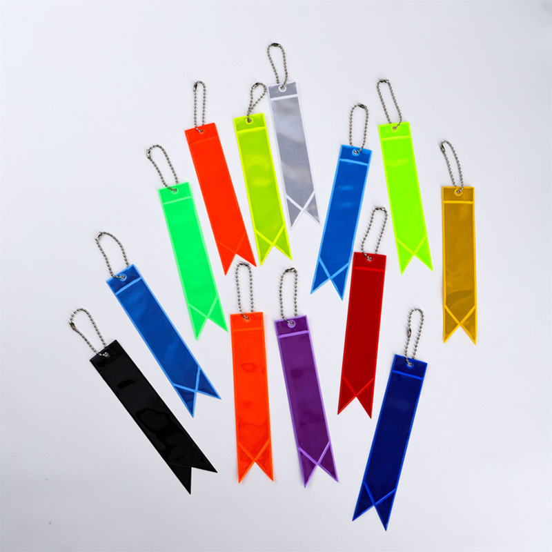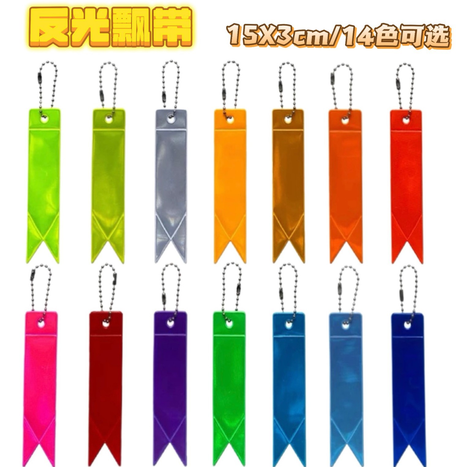 彩色反光条飘带挂件夜间安全反光跨境批发PVC创意荧光钥匙扣包挂