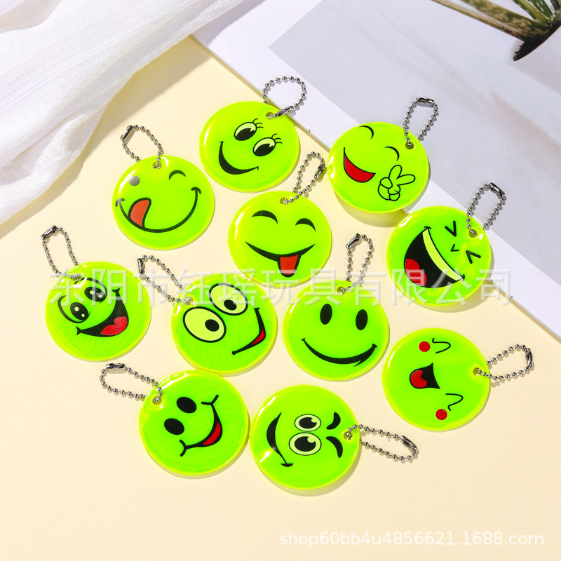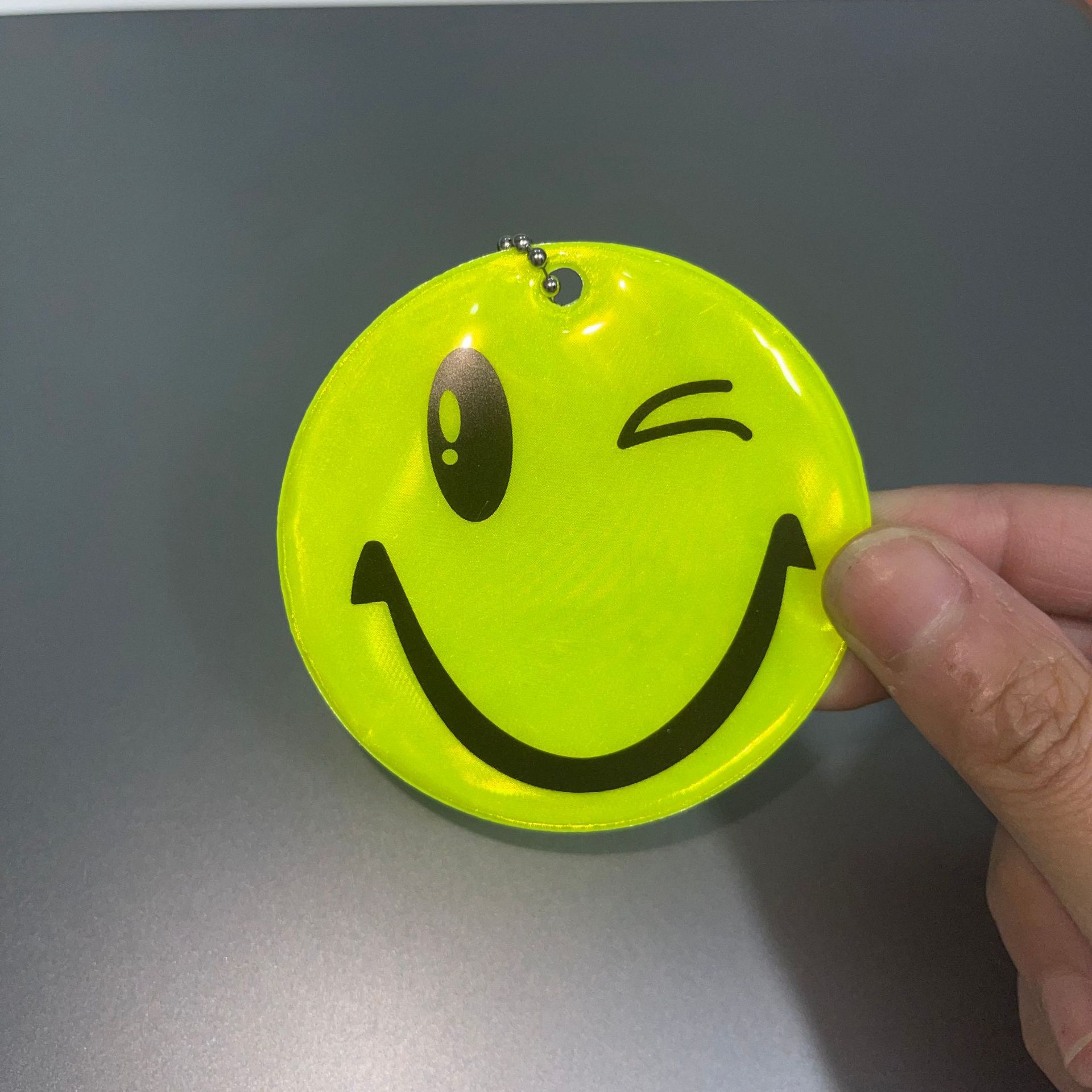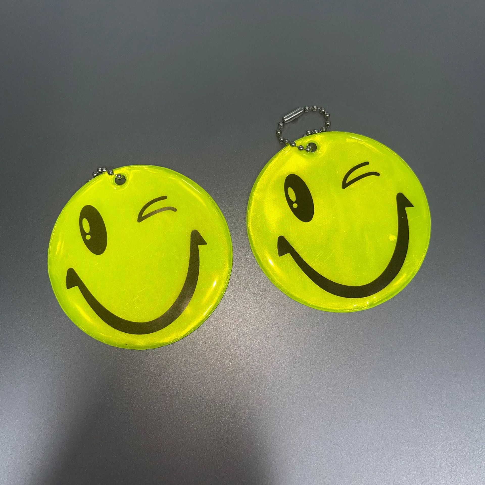 片面笑顔7cm*7cm反射型ペンダントPVCキーホルダー、バッグ飾り、学生用バッグ安全装飾