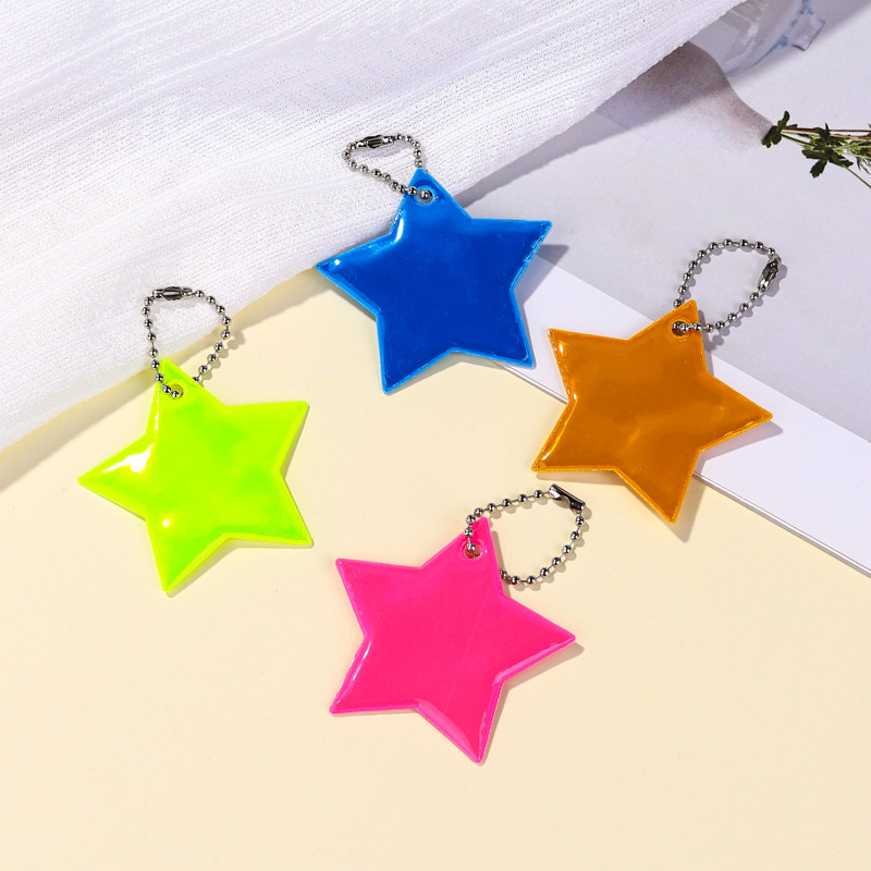 新型クロスボーダー反射五芒星キーホルダーpvc星ペンダント夜キーホルダーリュックサックペンダント